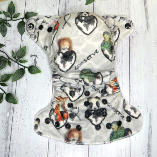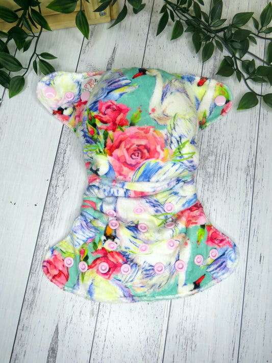 Each nappy is made using a minky outer layer, suede cloth inner layer and contains a water resistant layer so no additional cover is required.