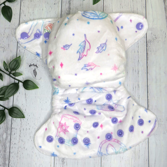 They are a snap in all in 2 nappy and come with a snap in bamboo insert topped with suede cloth, a bamboo snake insert and a small bamboo booster. These inserts really give you the ability to tailor the absorbency to suit your babies needs