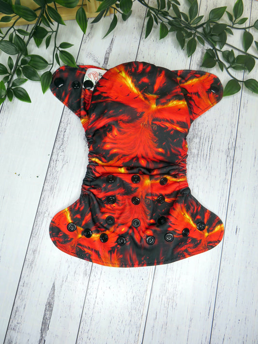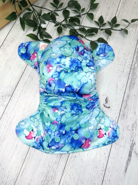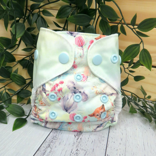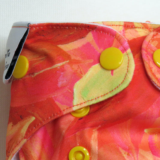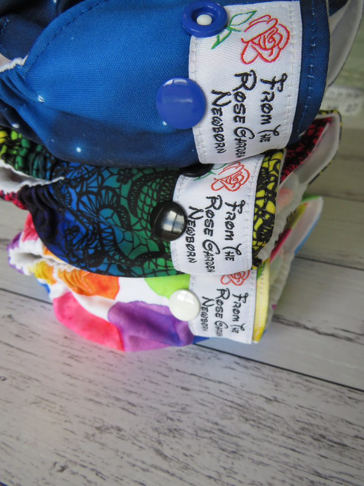 Our Newborn nappies are a front snapping nappy with a single row of waist snaps fitting from as small as 2kgs right till about 7kgs.