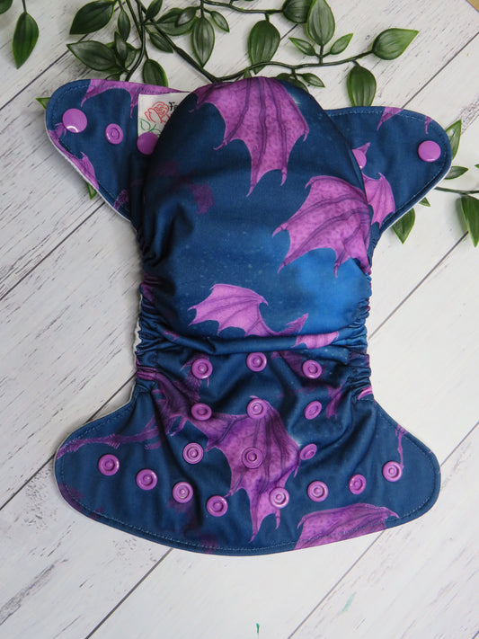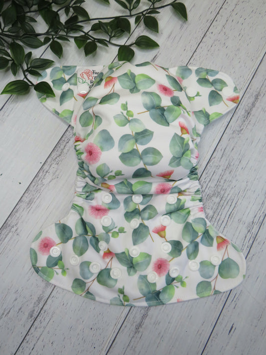 They are a snap in all in 2 nappy and come with a snap in bamboo insert topped with suede cloth, a bamboo snake insert and a small bamboo booster. These inserts really give you the ability to tailor the absorbency to suit your babies needs