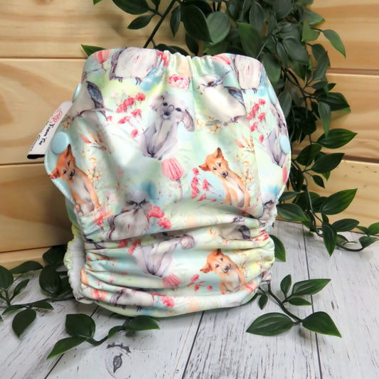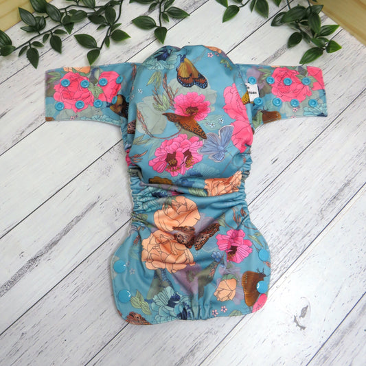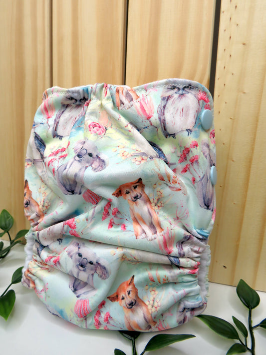Each nappy comes with a snap in long snake style insert and a lay in booster that are composed of 2 layers of bamboo, topped with suede cloth to help keep bubs feeling nice and dry.