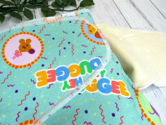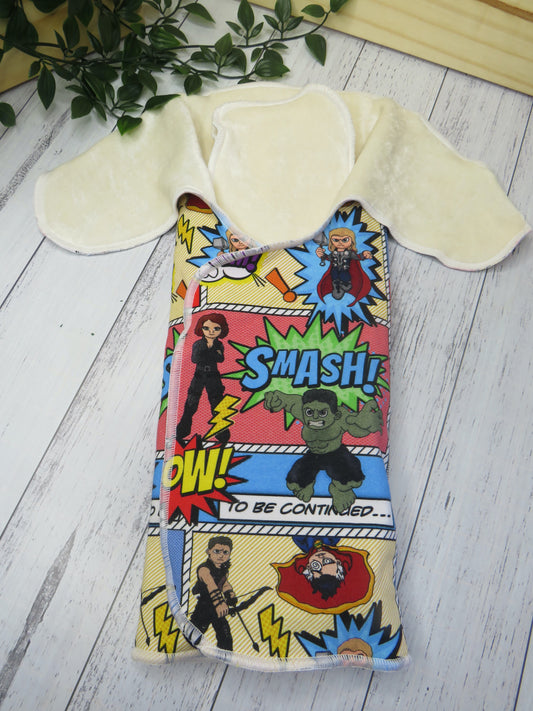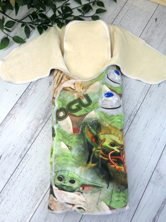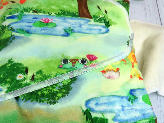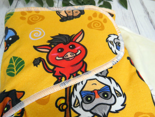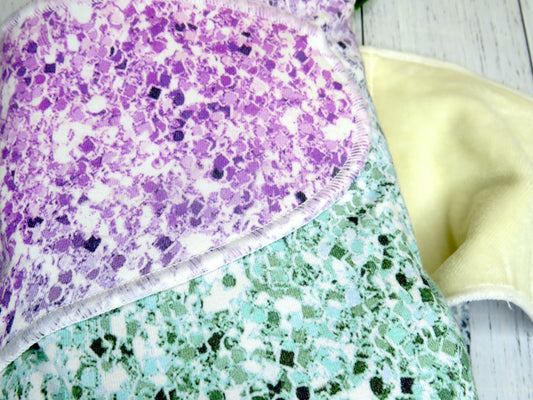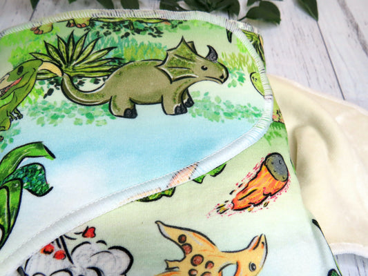 They are 100% absorbent made from cotton lycra, velour and bamboo so will require a PUL, Wool or fleece cover, as well as requiring a snappi, pins or some other nappy closure system as they are designed without velcro or snaps.