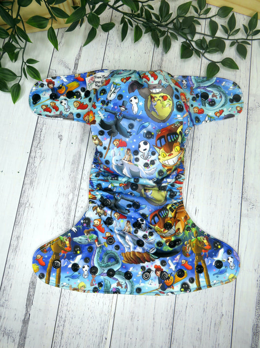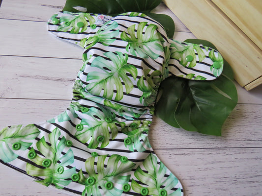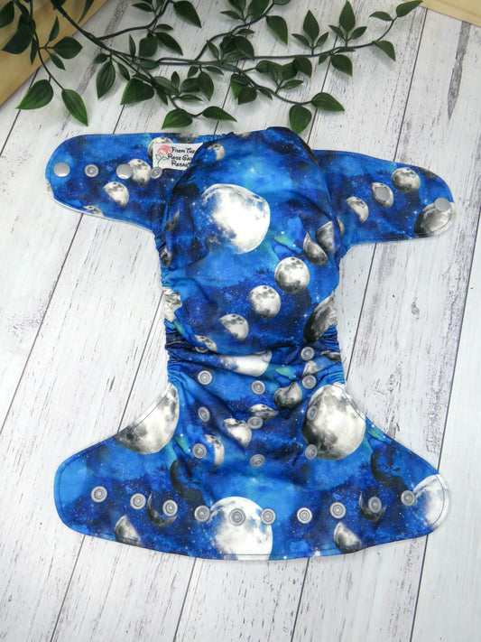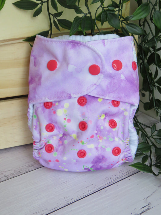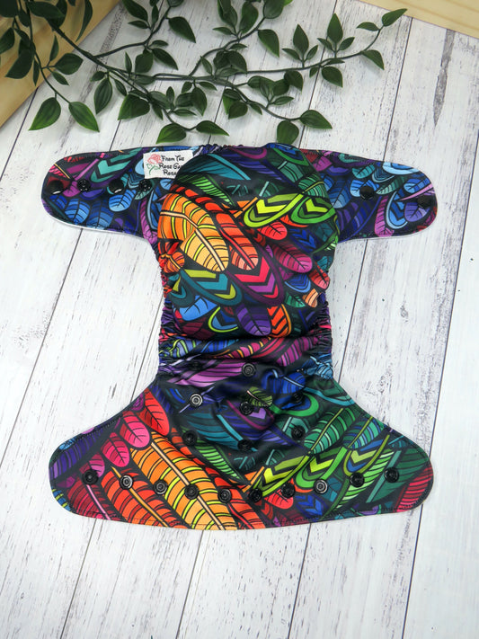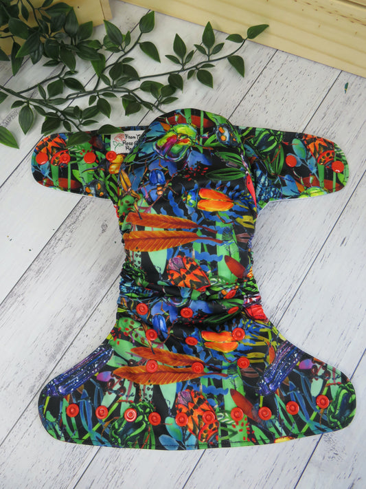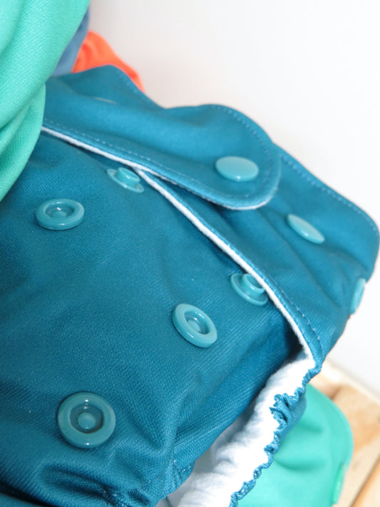 Each nappy is made with a PUL outer, has a suede cloth inner, has a water resistant layer and comes with a long bamboo snake insert and a smaller snap in bamboo insert that’s topped with suede cloth to keep your little one feeling nice and dry.
