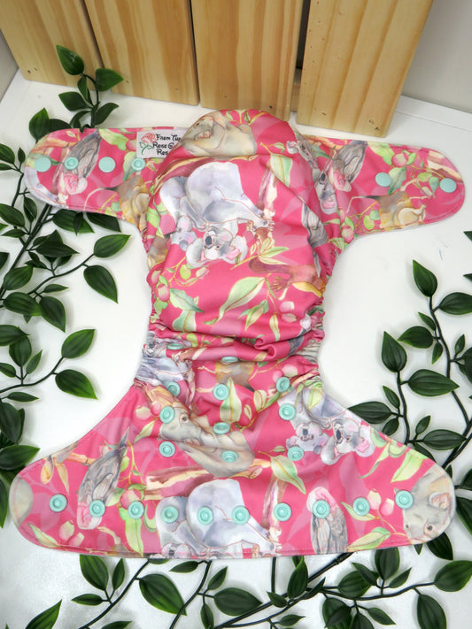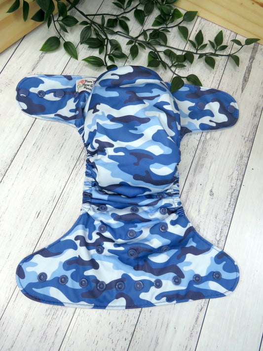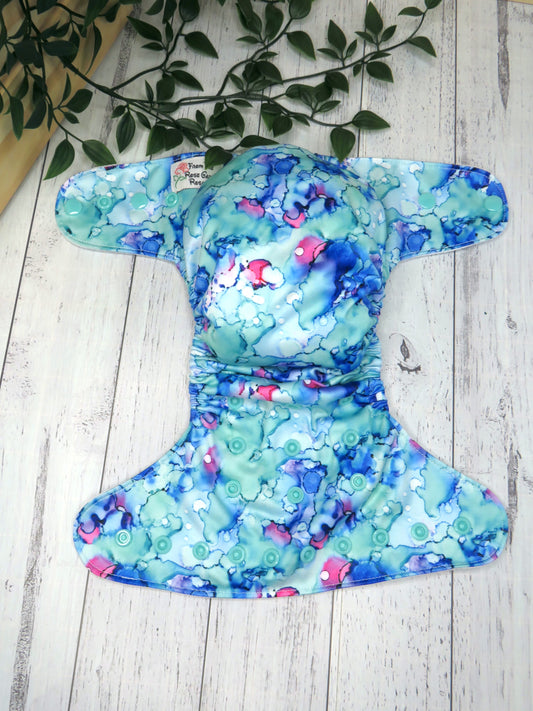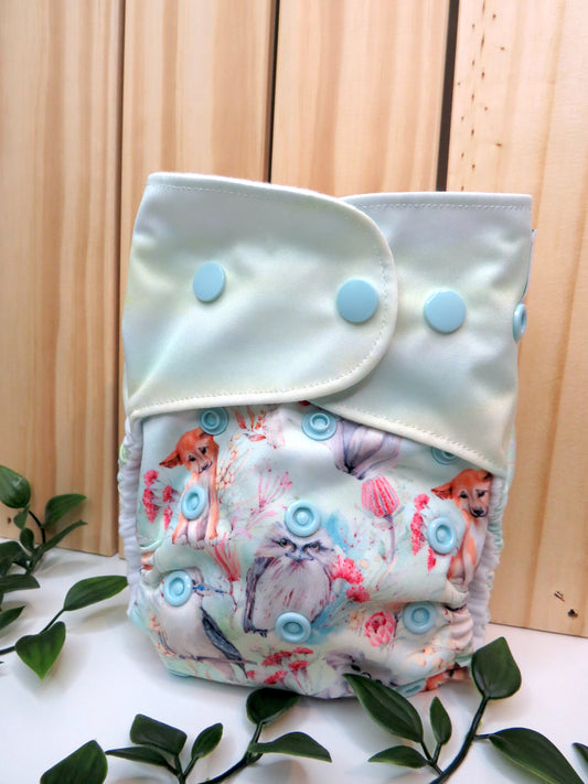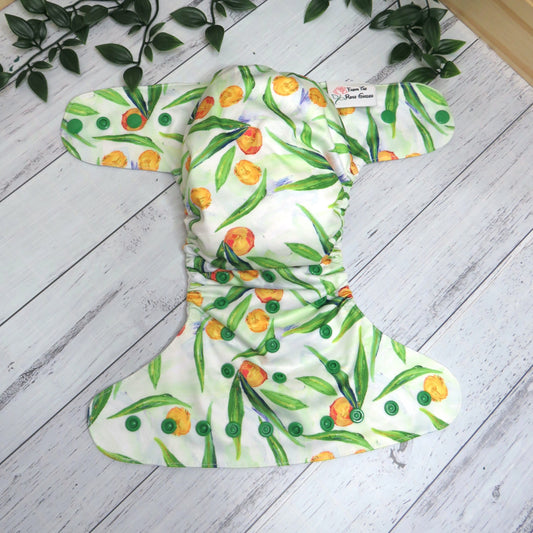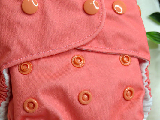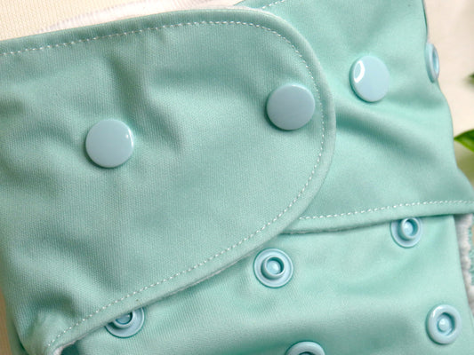 Each nappy is made with a PUL outer, has a suede cloth inner, has a water resistant layer and comes with a long bamboo snake insert and a smaller snap in bamboo insert that’s topped with suede cloth to keep your little one feeling nice and dry.