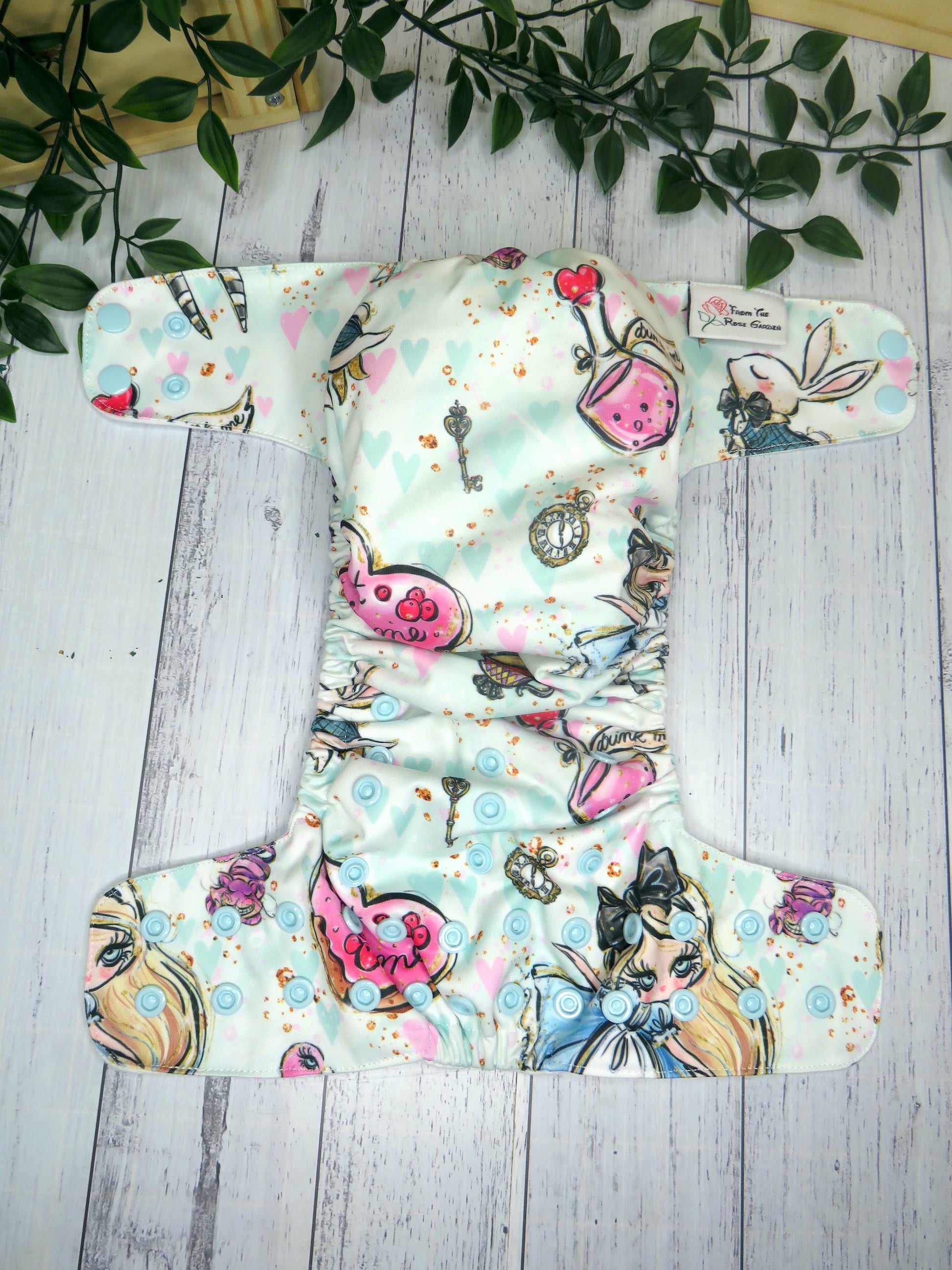 Our Double row front snapping cloth nappies are an All-In-Two style with 4 rise settings and are designed to fit from birth to toilet training (4-20kgs).
