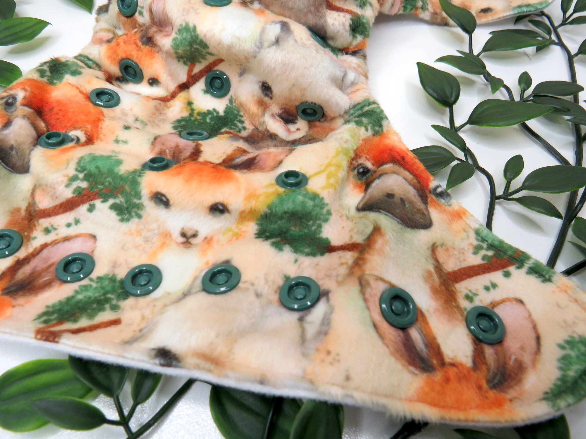 Each nappy comes with a snap in bamboo insert topped with suede cloth and a long bamboo snake insert that can be folded for where the absorbency is needed.