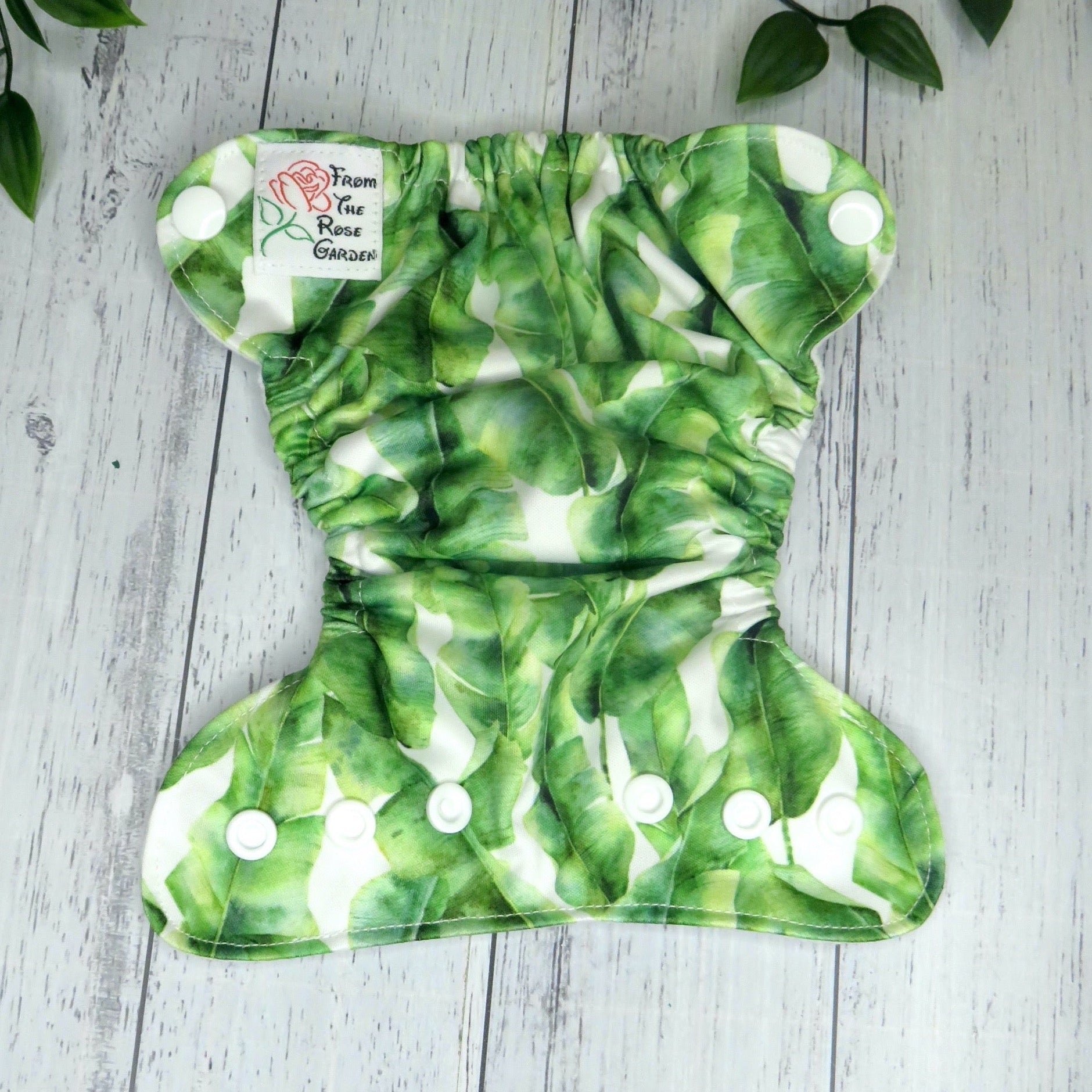 The outer layer of this nappy is PUL with a suede cloth inner, the insert is a fold over snake style insert composed of bamboo and topped with suede cloth to keep bub feeling nice and dry.