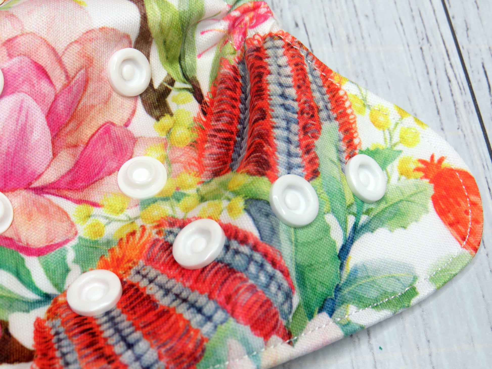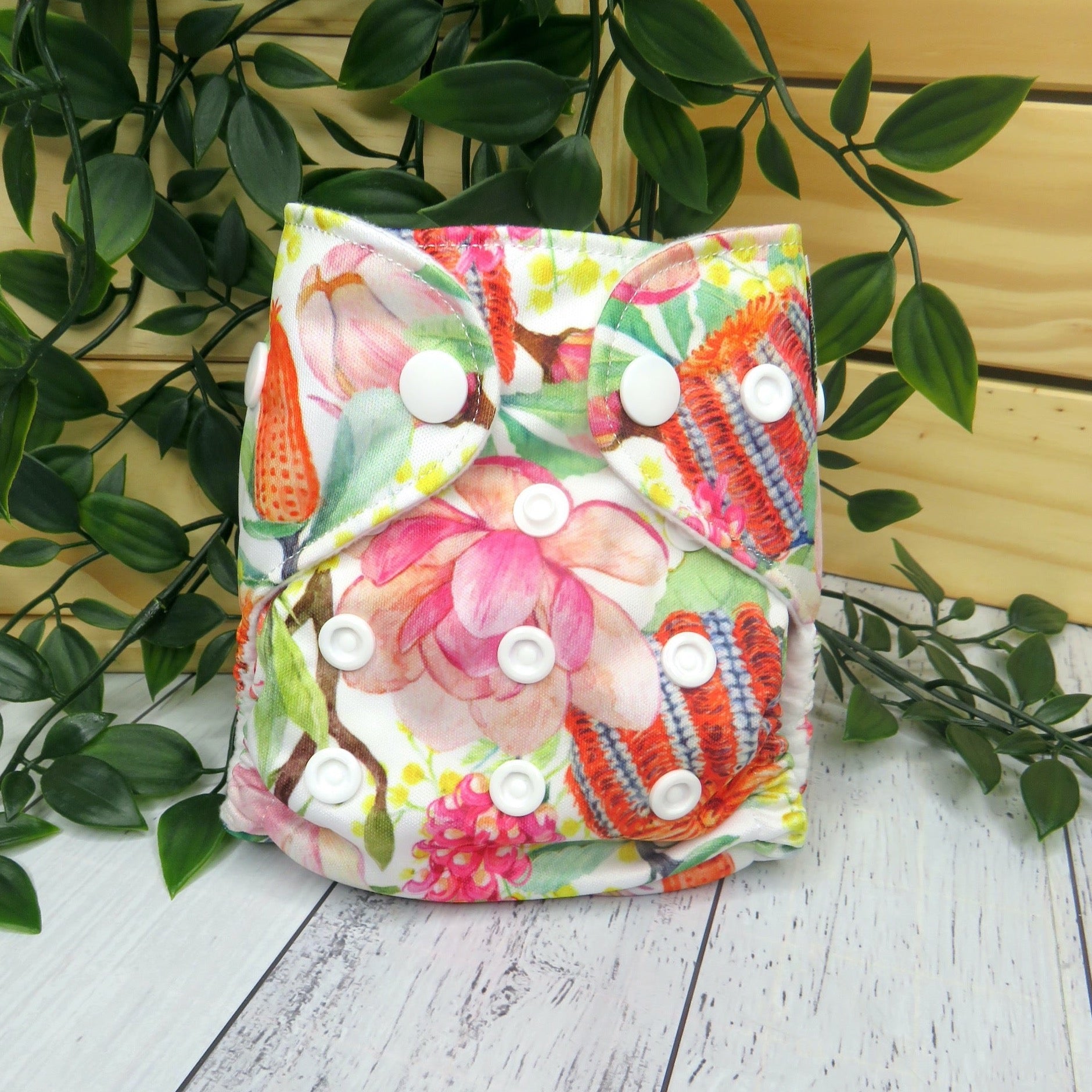It comes with a snap in bamboo insert topped with suede cloth, a bamboo snake style insert as well as an extra bamboo booster. This will allow you to tailor the nappies absorbency to suit your babies needs