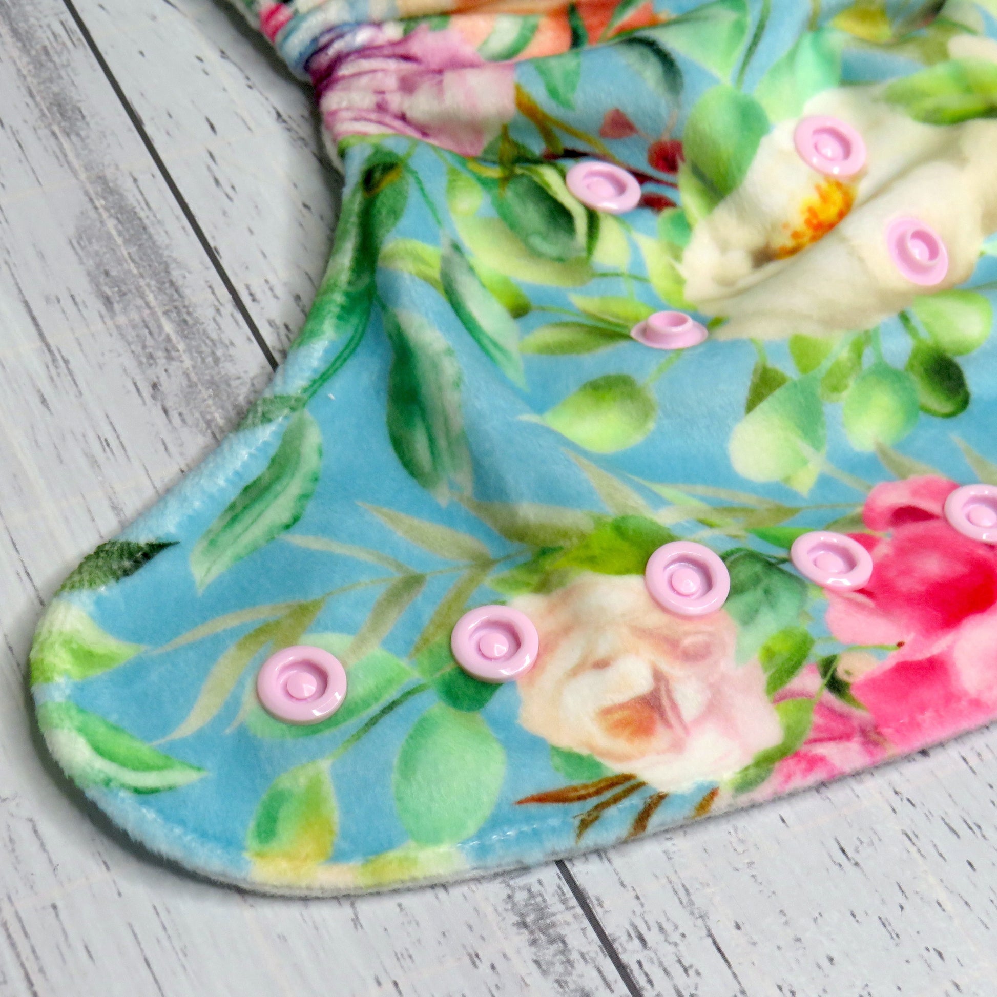 Each nappy is made with a velvet minky outer and suede cloth inner.
