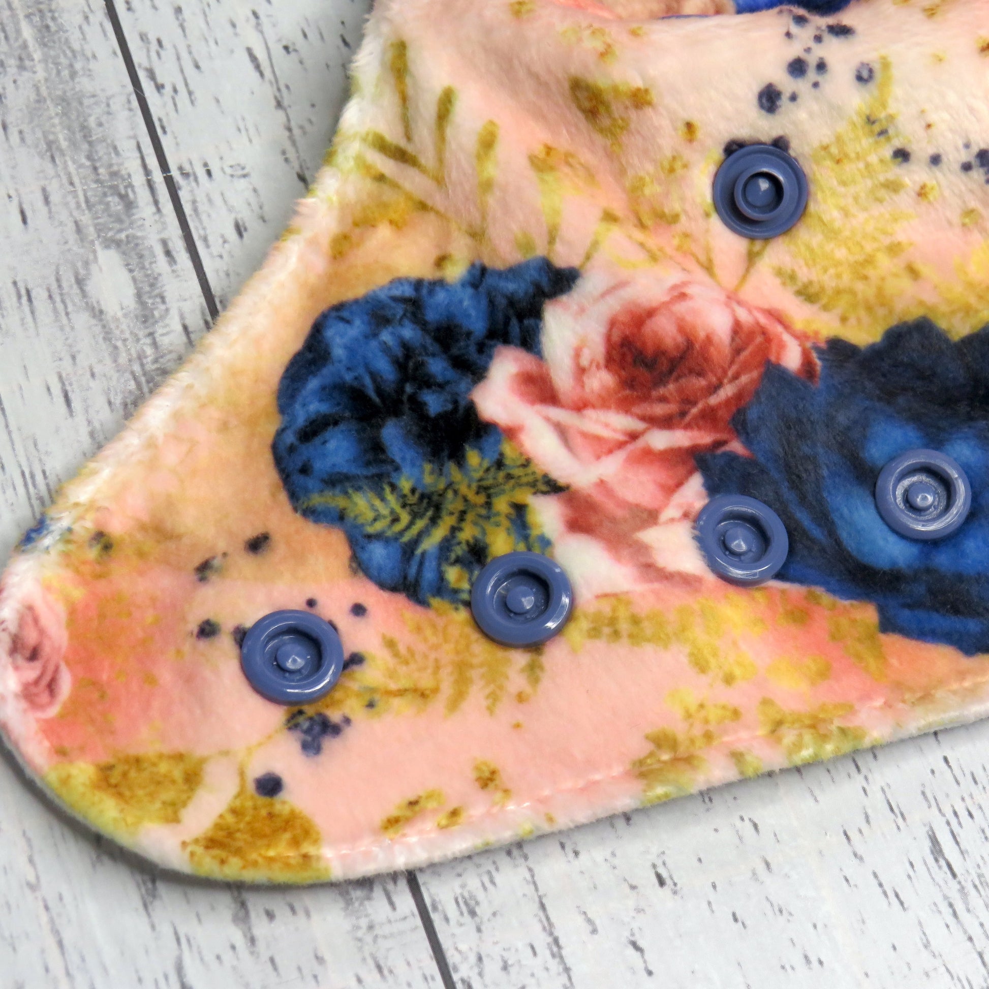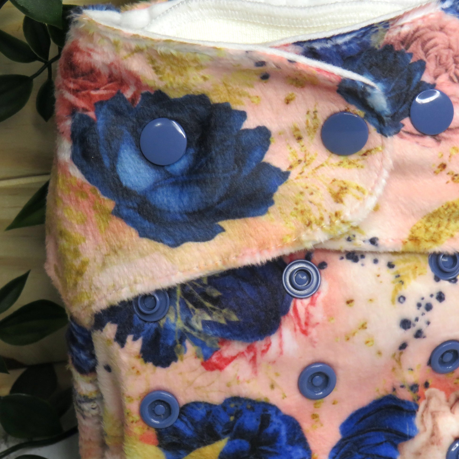 Each nappy comes with a snap in bamboo insert topped with suede cloth and a long bamboo snake insert that can be folded for where the absorbency is needed.