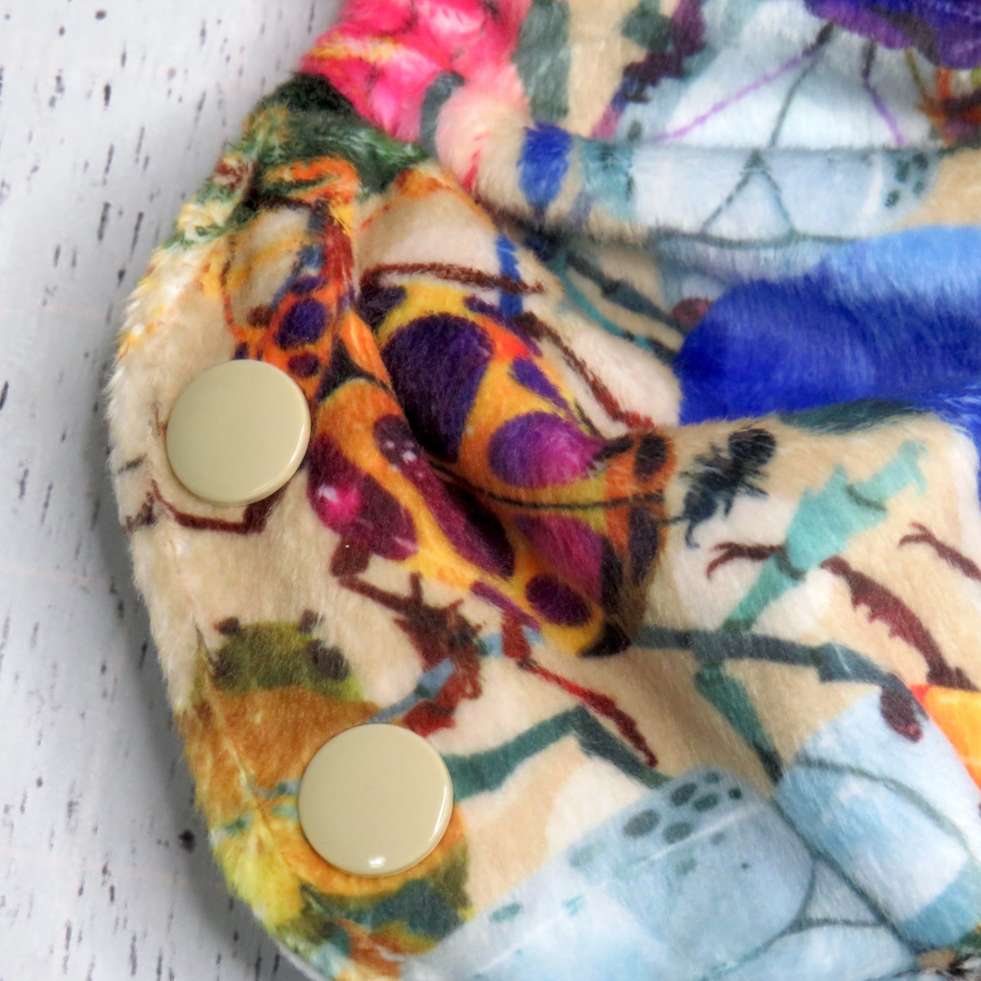 Each nappy comes with a bamboo snap in insert topped with suede cloth and a long bamboo snake insert.