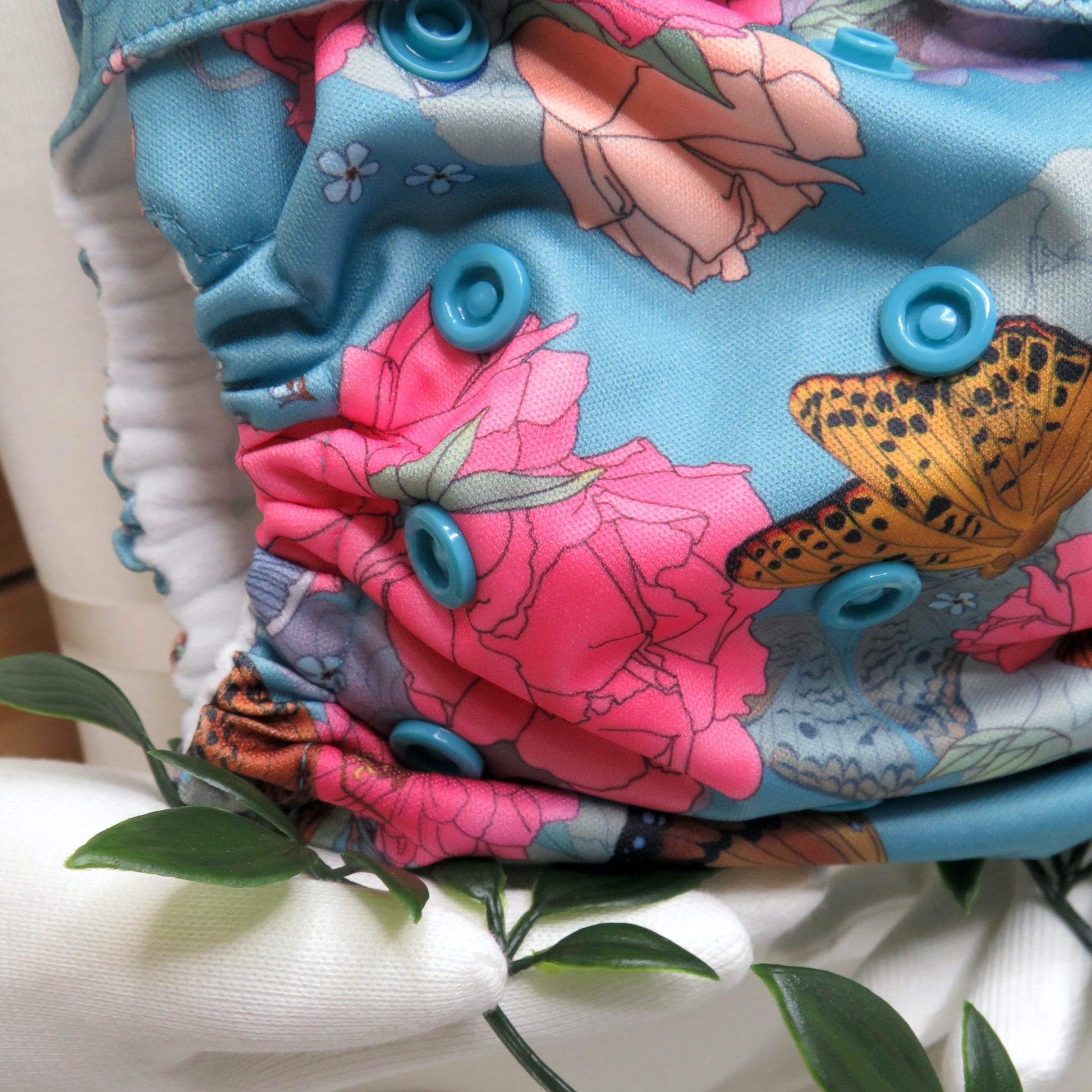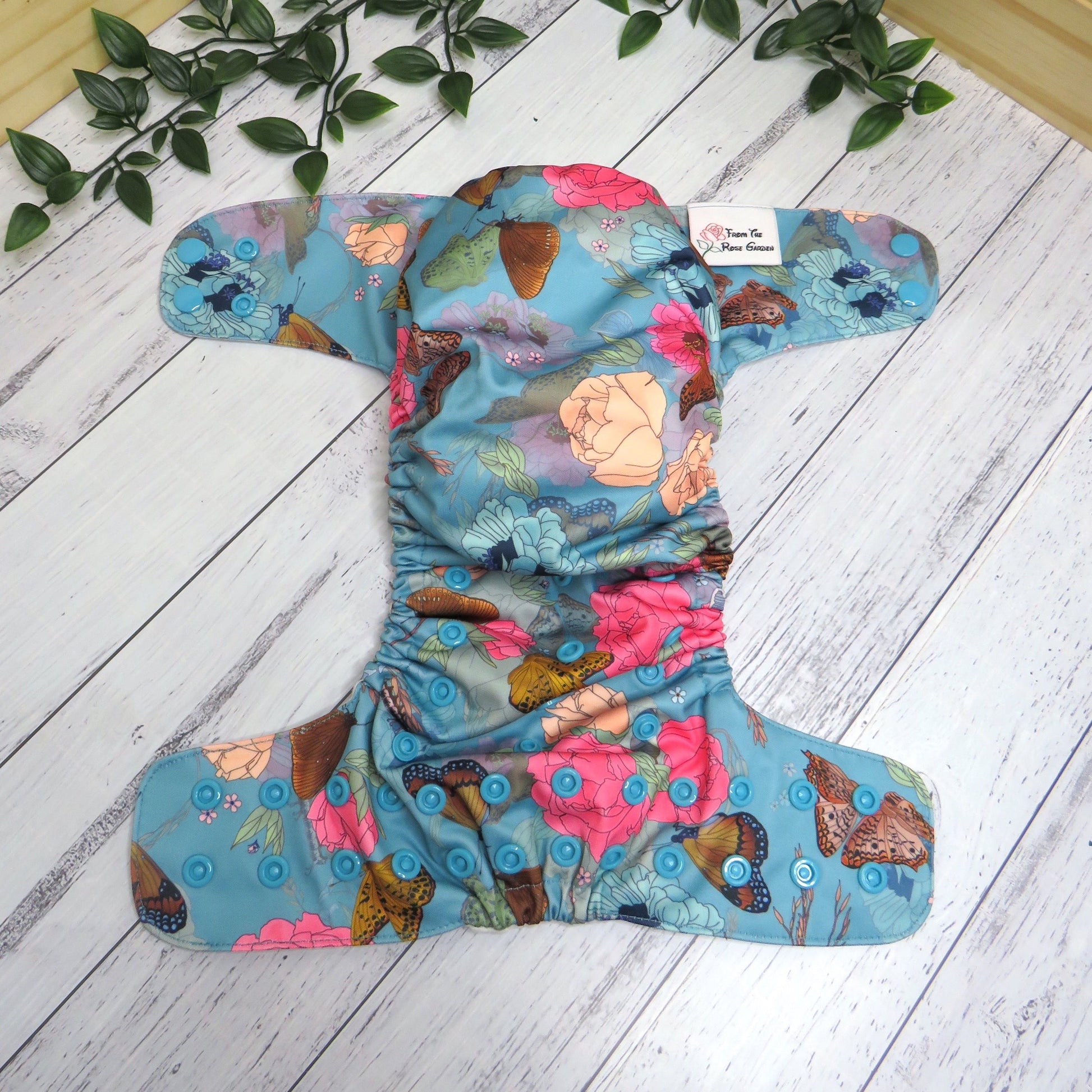 Each nappy comes with a long bamboo snake insert and a smaller bamboo booster which is topped with suede cloth (a stay dry layer), which is all you need to give yourself a good start with your cloth nappy journey.
