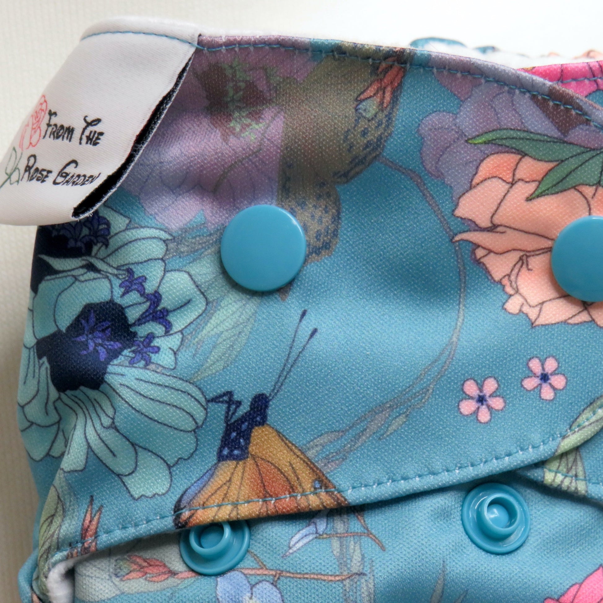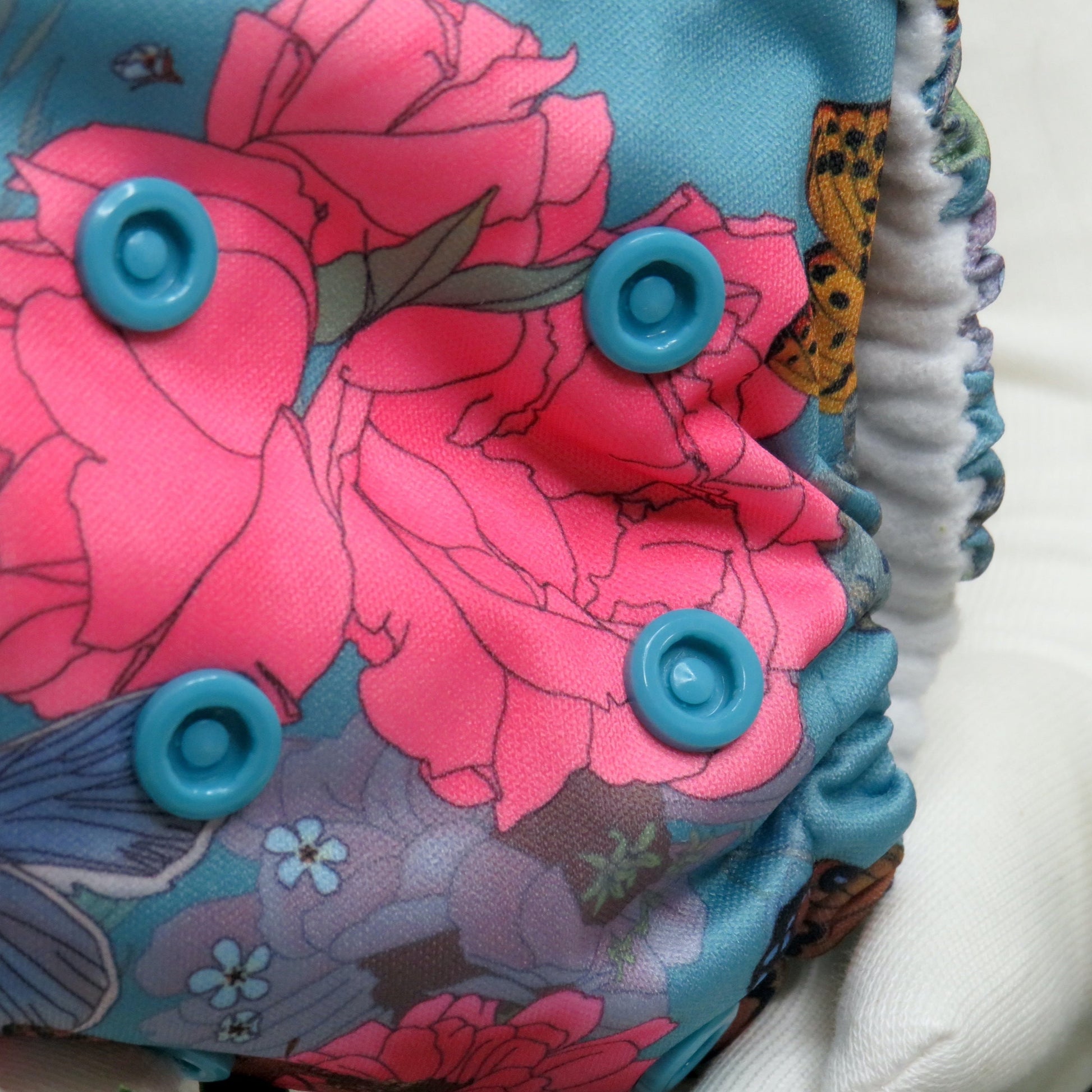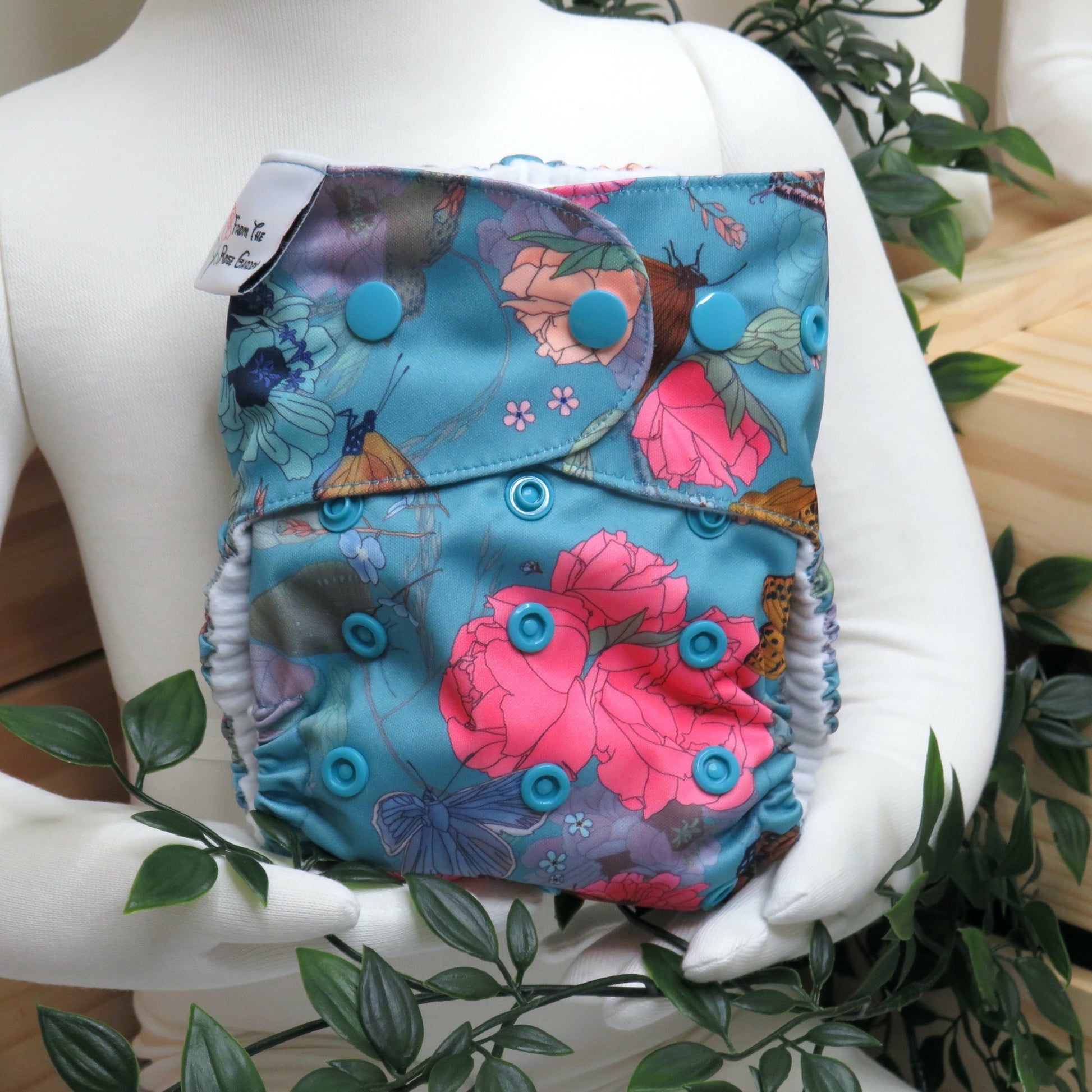 Our Rosarium nappy is a OSFM front snapping nappy that fits from approx 3-17kgs, which on average is from birth right up till toilet training. As with anything the fit may vary depending on your little ones shape.