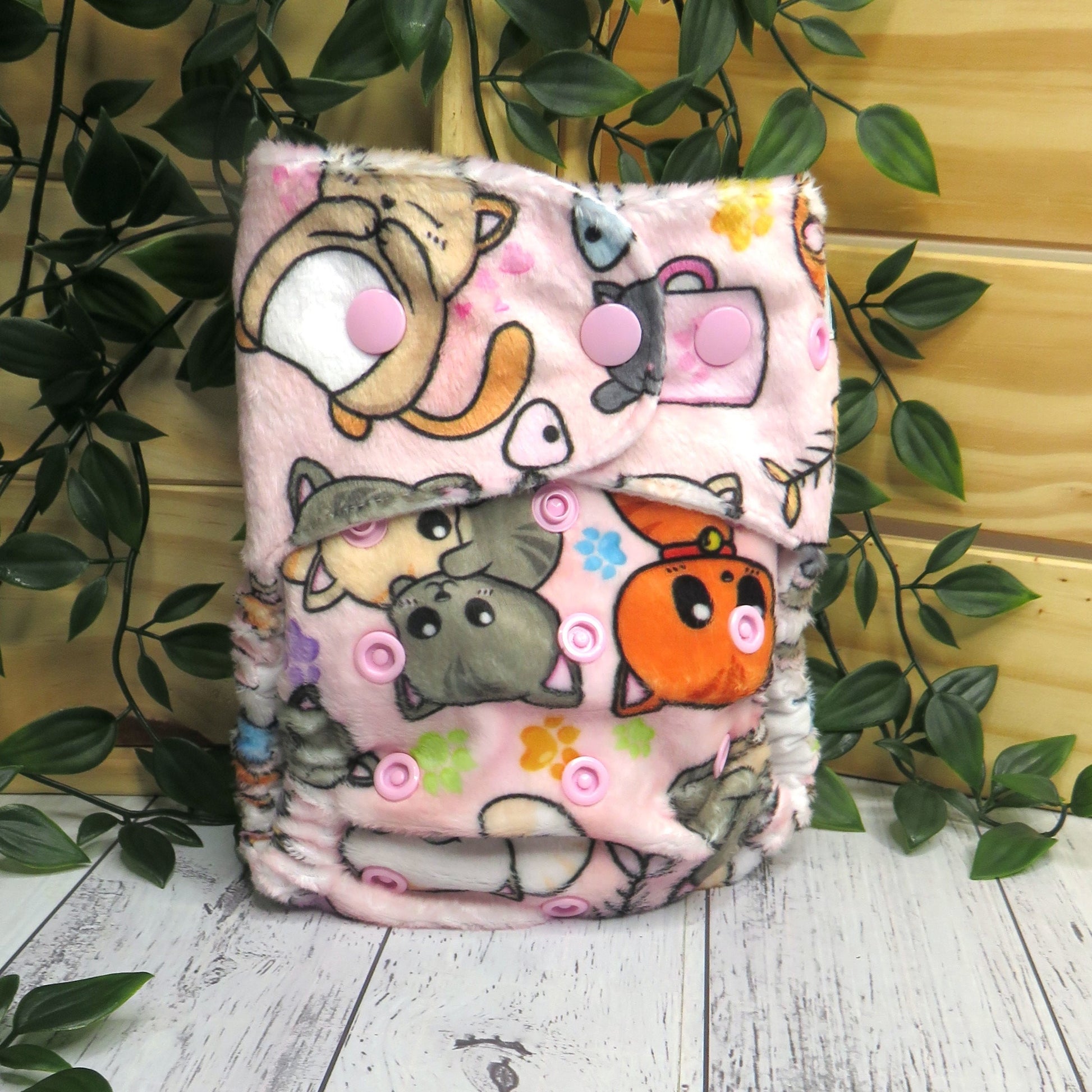 Our Rosarium nappy is a OSFM front snapping nappy that fits from approx 3-17kgs, which on average is from birth right up till toilet training. As with anything the fit may vary depending on your little ones shape.