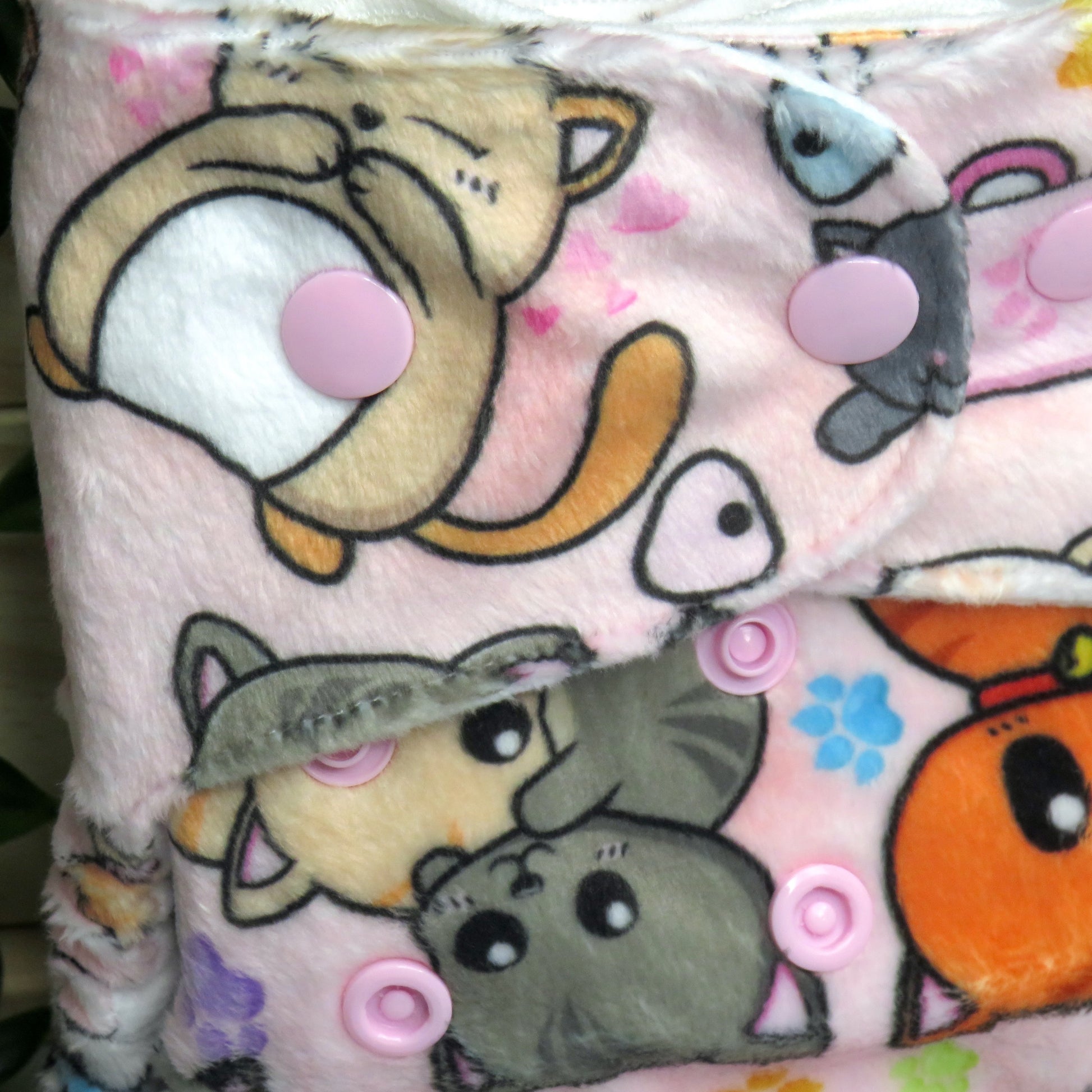 Each nappy comes with a snap in bamboo insert topped with suede cloth and a long bamboo snake insert that can be folded for where the absorbency is needed.