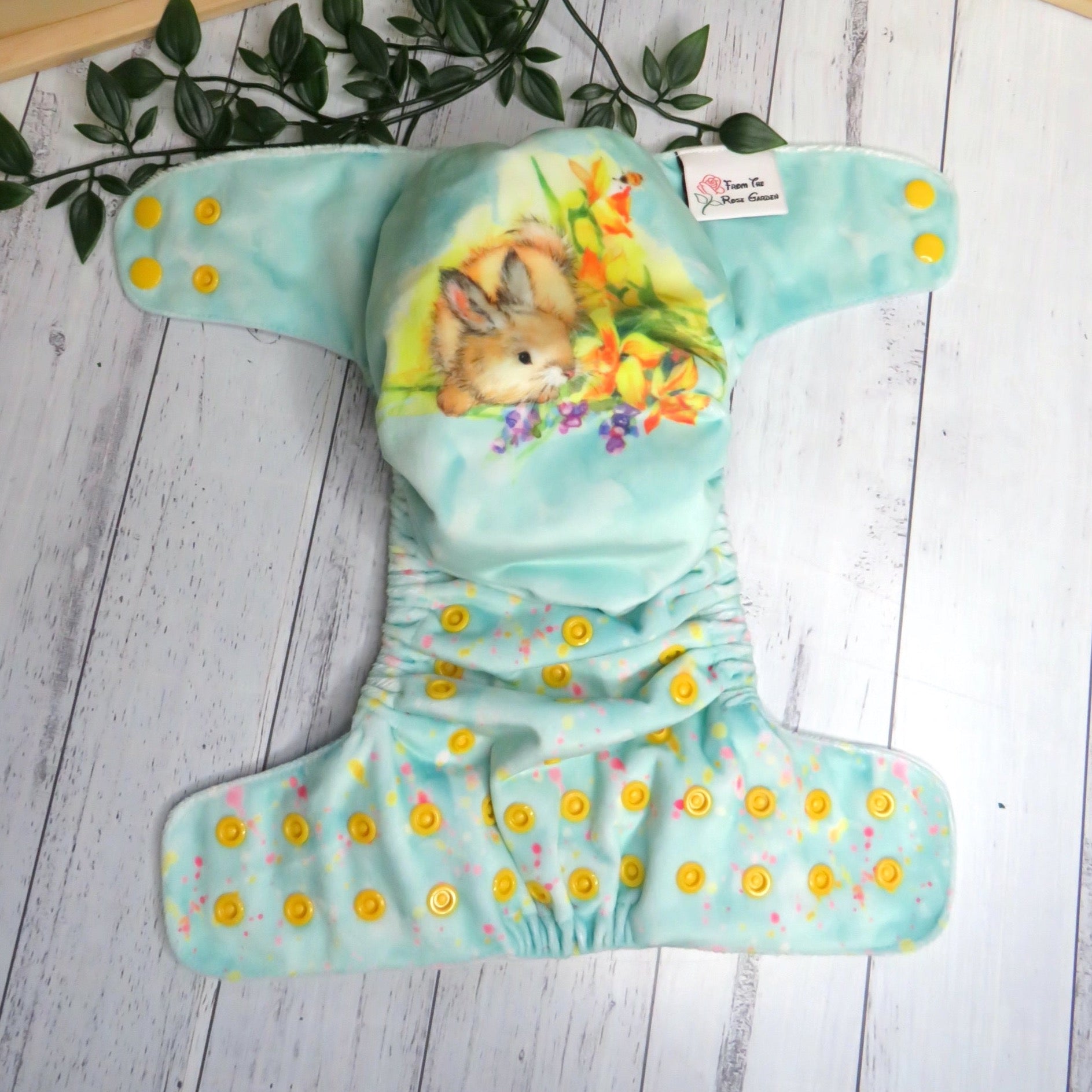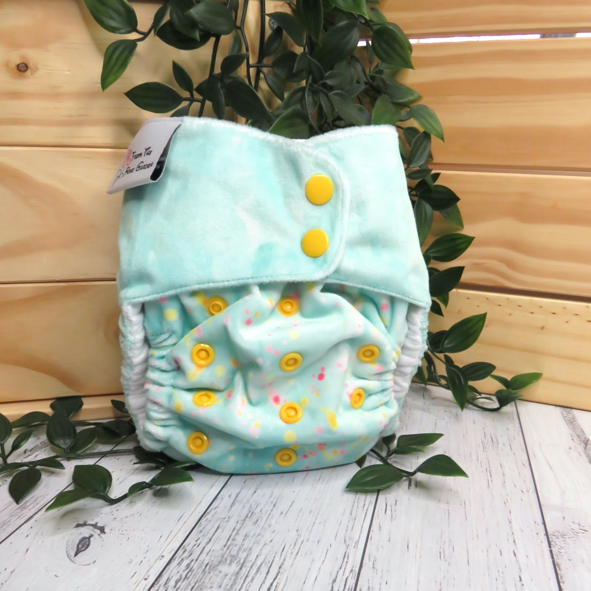 Each nappy comes with a long bamboo snake insert and a smaller bamboo booster which is topped with suede cloth (a stay dry layer), which is all you need to give yourself a good start with your cloth nappy journey.