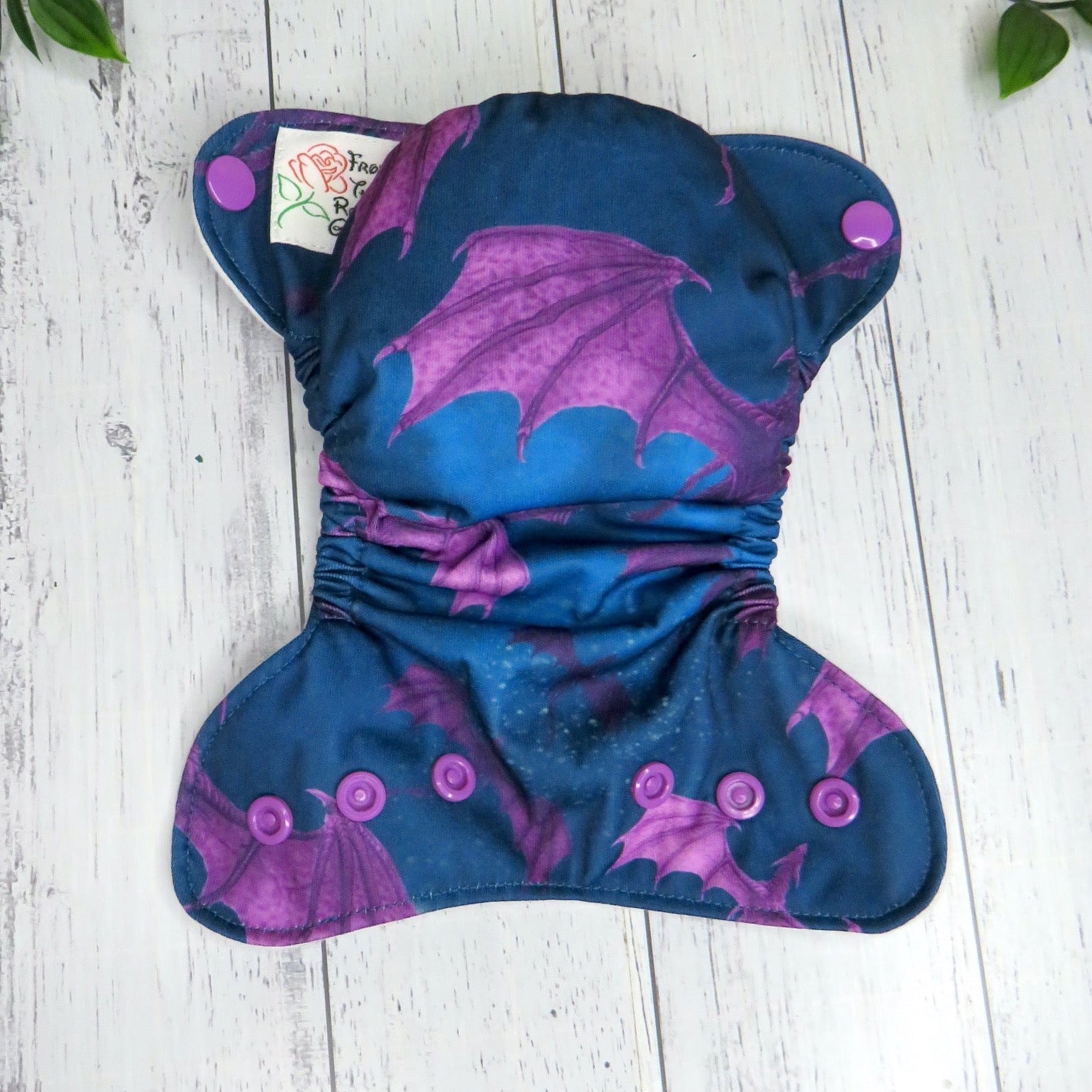 The outer layer of this nappy is PUL with a suede cloth inner, the insert is a fold over snake style insert composed of bamboo and topped with suede cloth to keep bub feeling nice and dry.