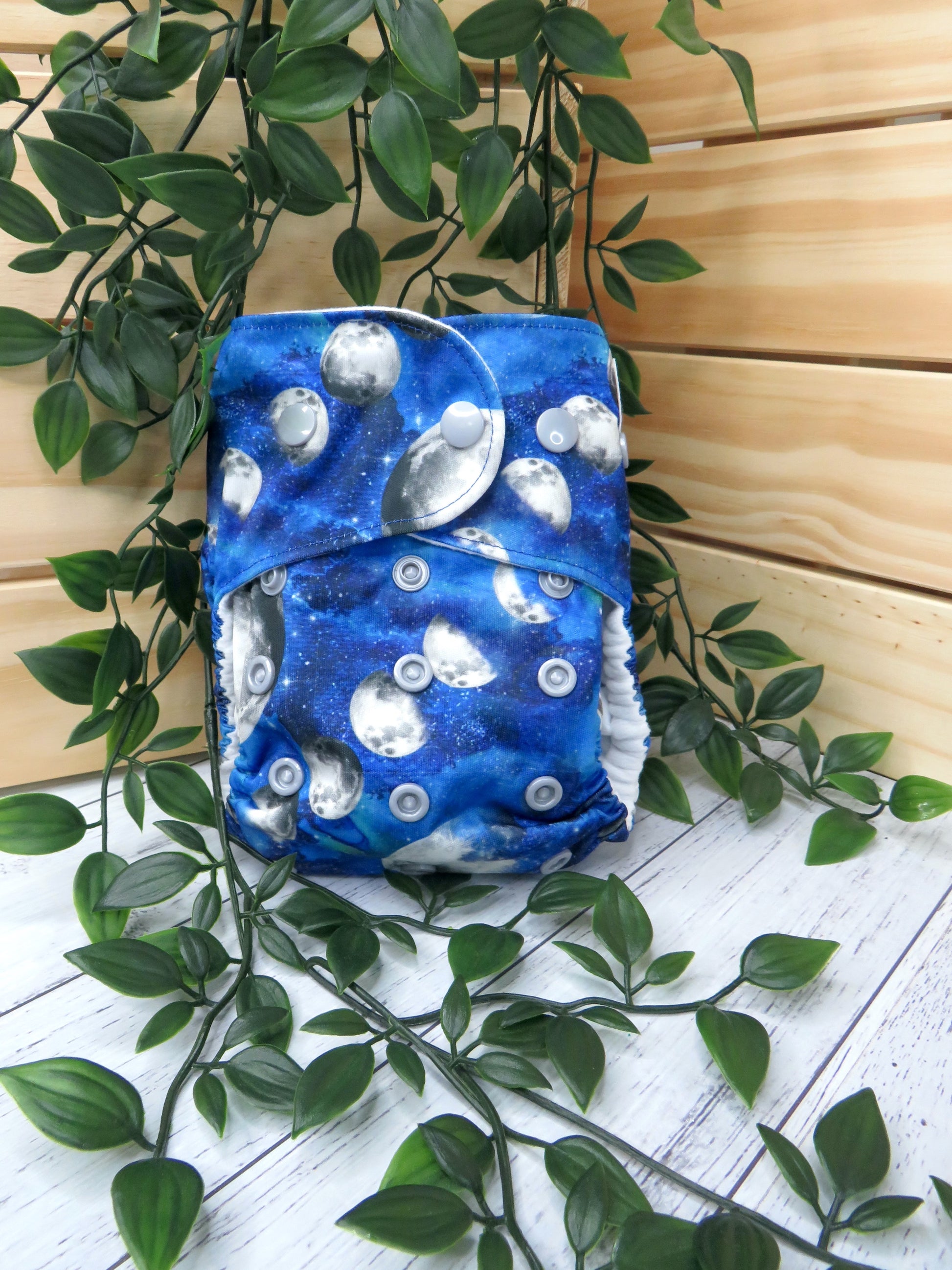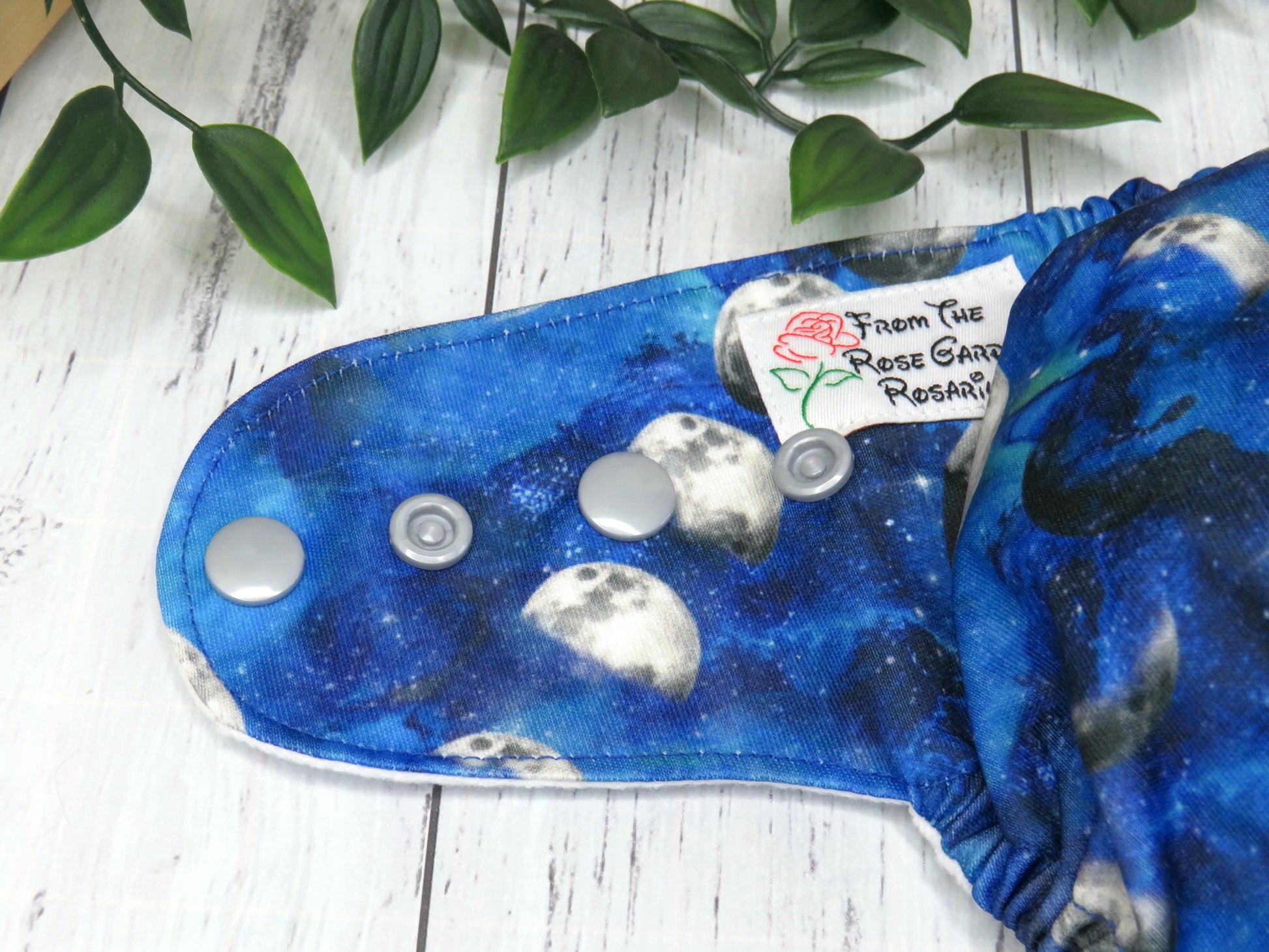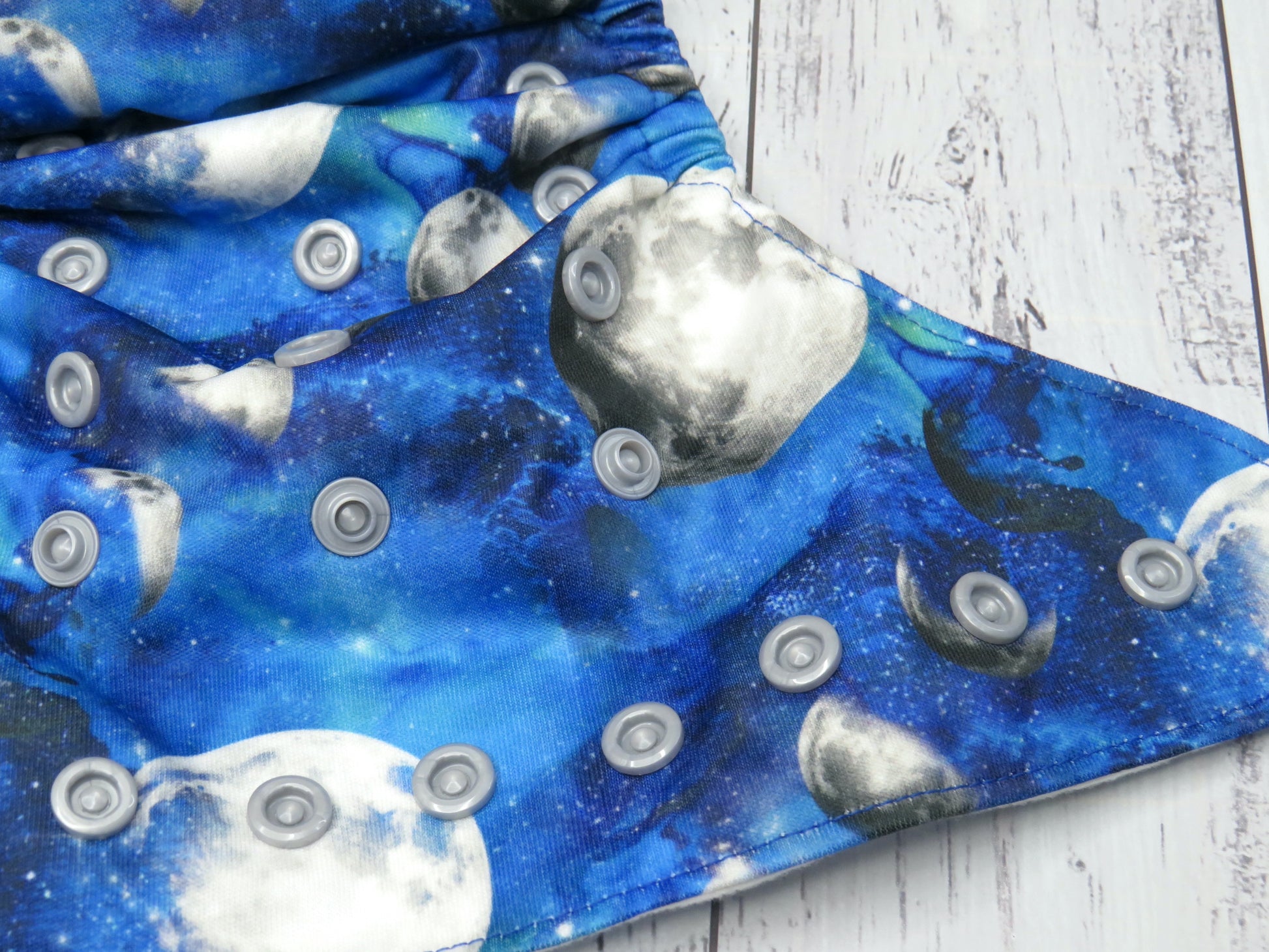 Each nappy comes with a snap in bamboo insert topped with suede cloth and a long bamboo snake insert that can be folded for where the absorbency is needed.