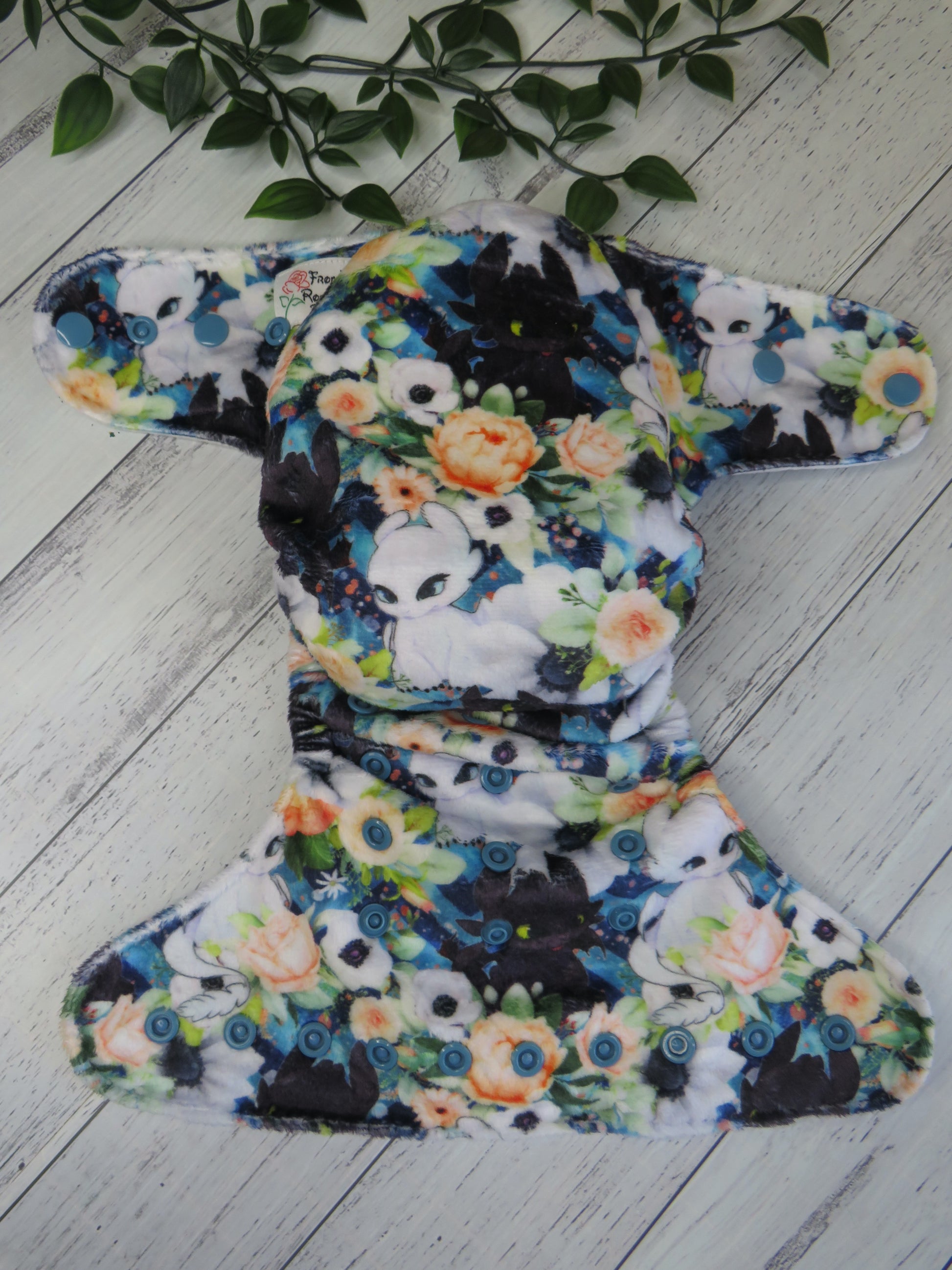 Our Rosarium nappy is a OSFM front snapping nappy that fits from approx 3-17kgs, which on average is from birth right up till toilet training. As with anything the fit may vary depending on your little ones shape.