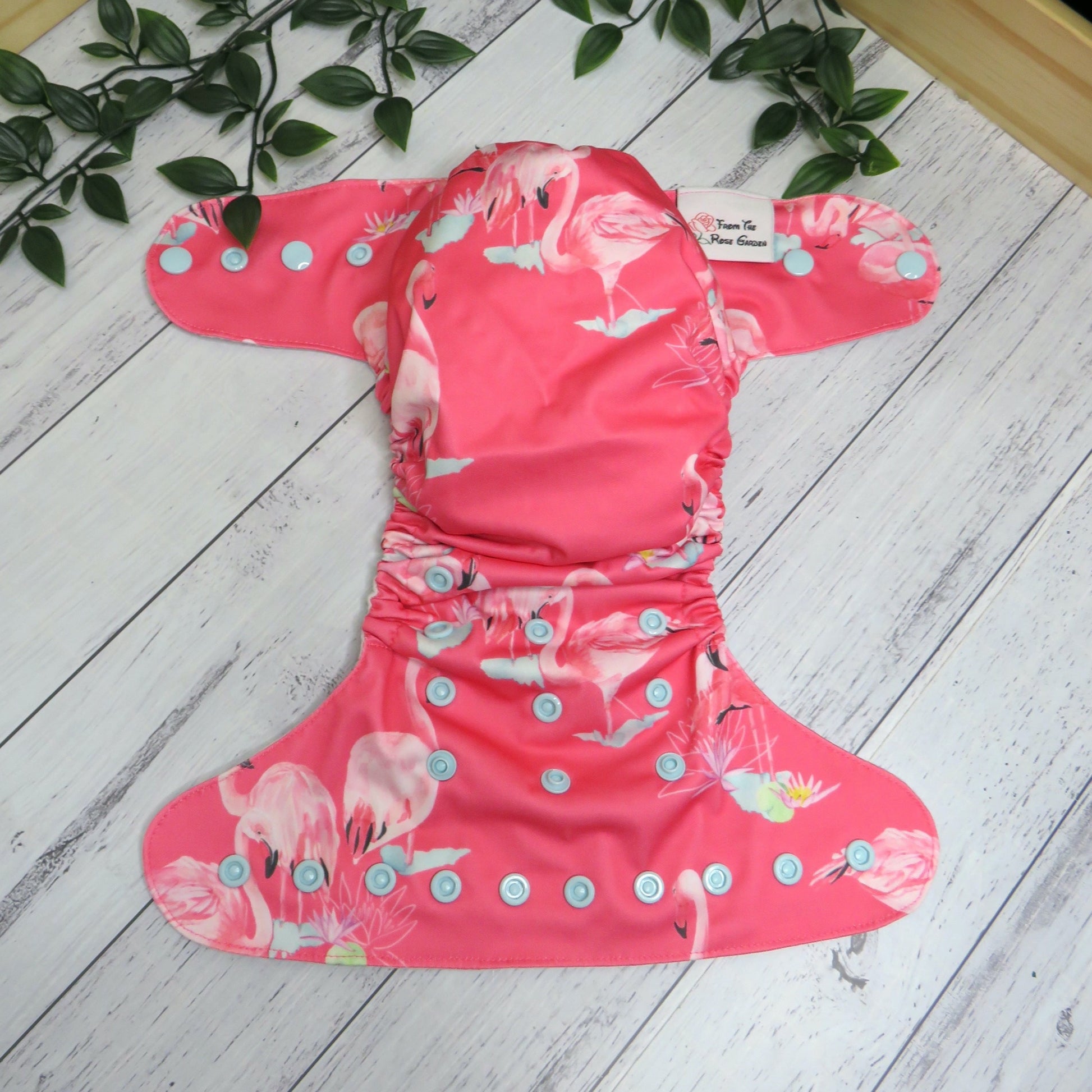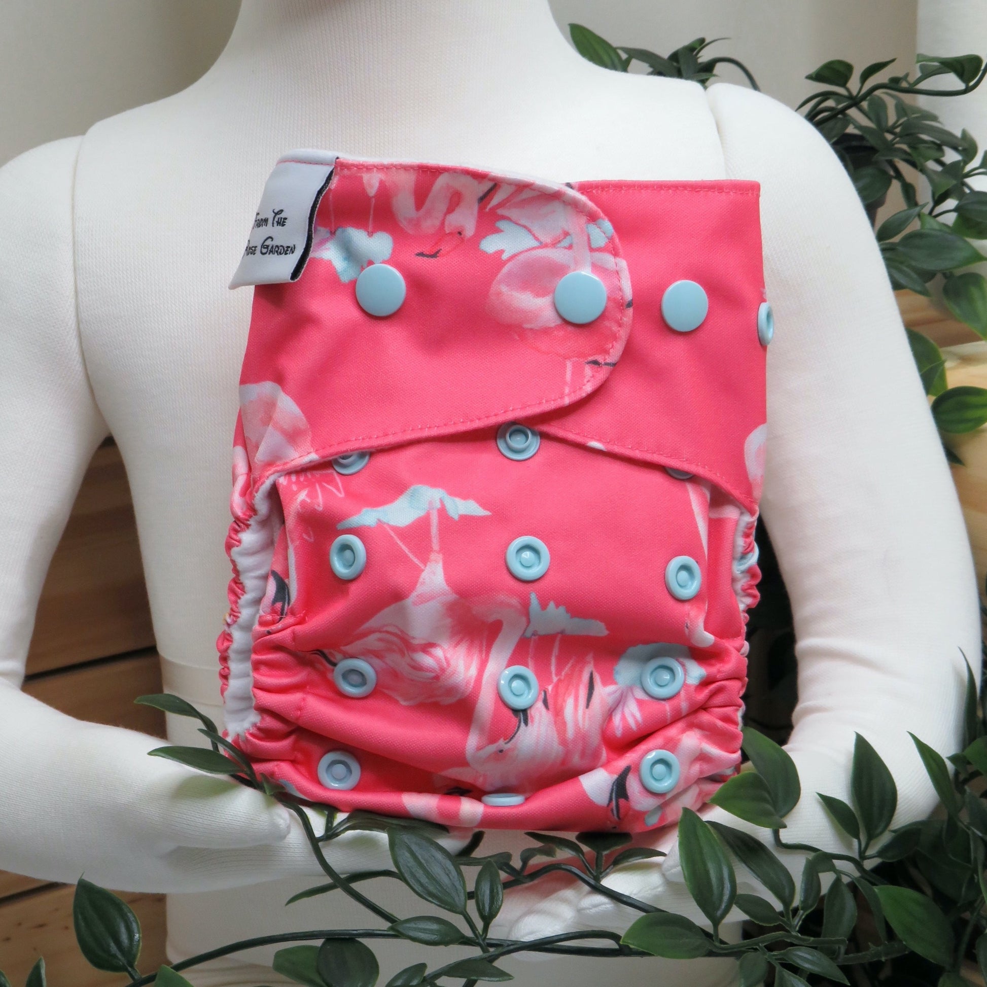 Our Rosarium nappy is a OSFM front snapping nappy that fits from approx 3-17kgs, which on average is from birth right up till toilet training. As with anything the fit may vary depending on your little ones shape.