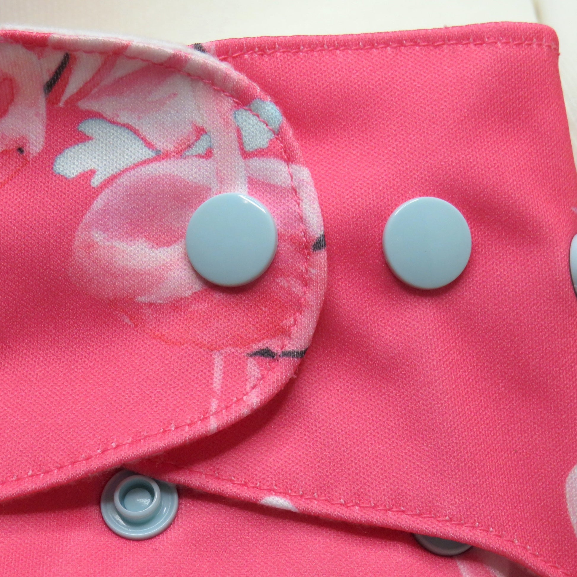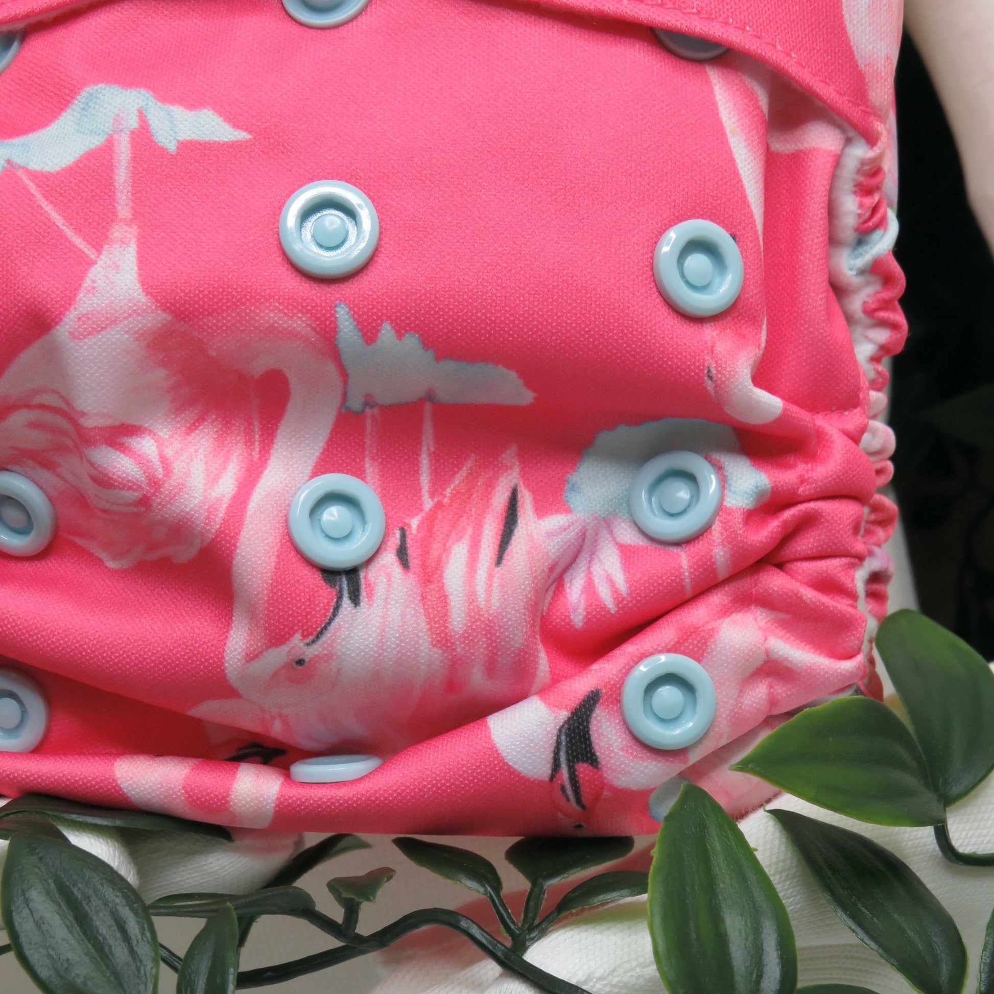 Each nappy comes with a snap in bamboo insert topped with suede cloth and a long bamboo snake insert that can be folded for where the absorbency is needed.