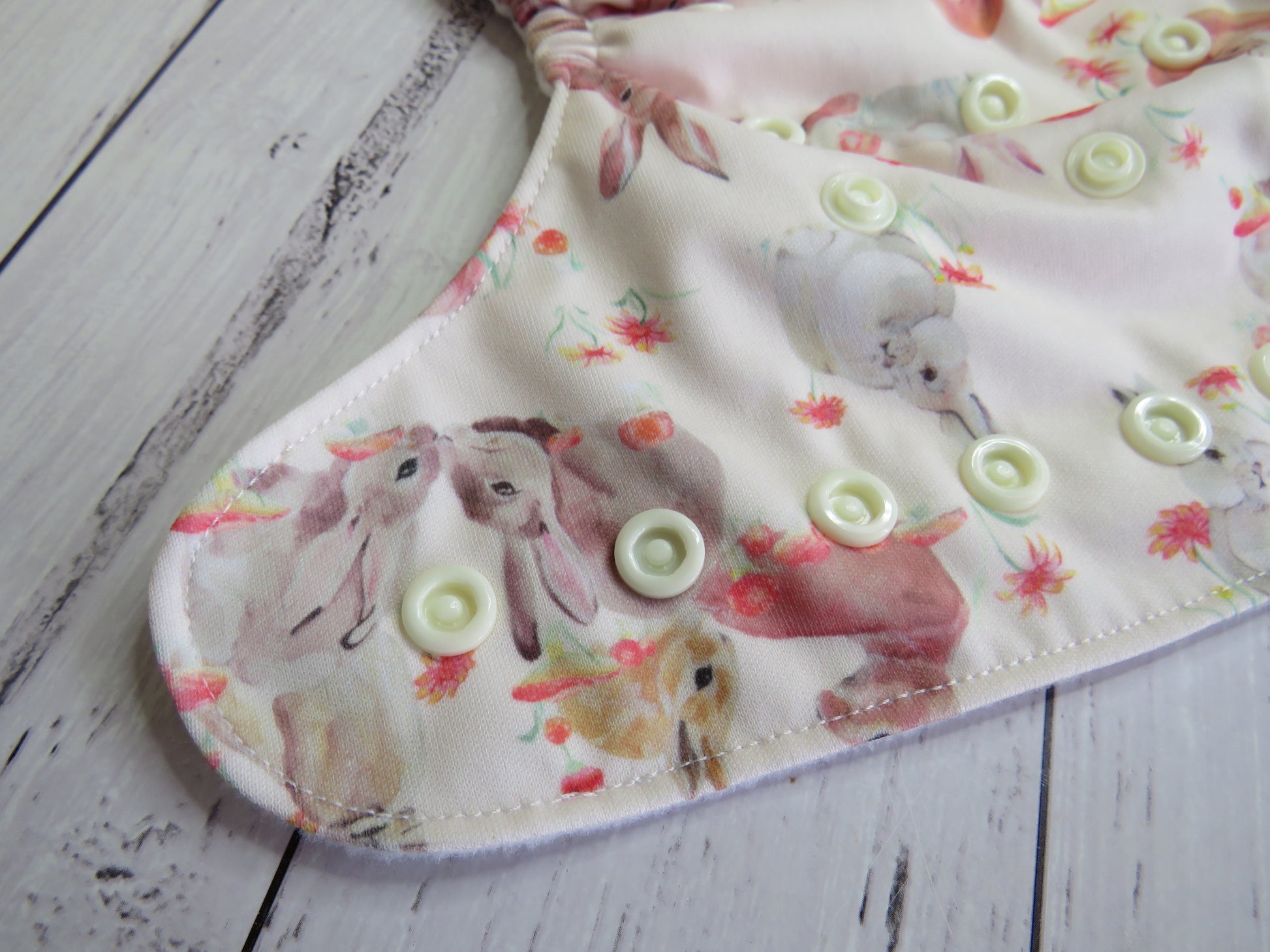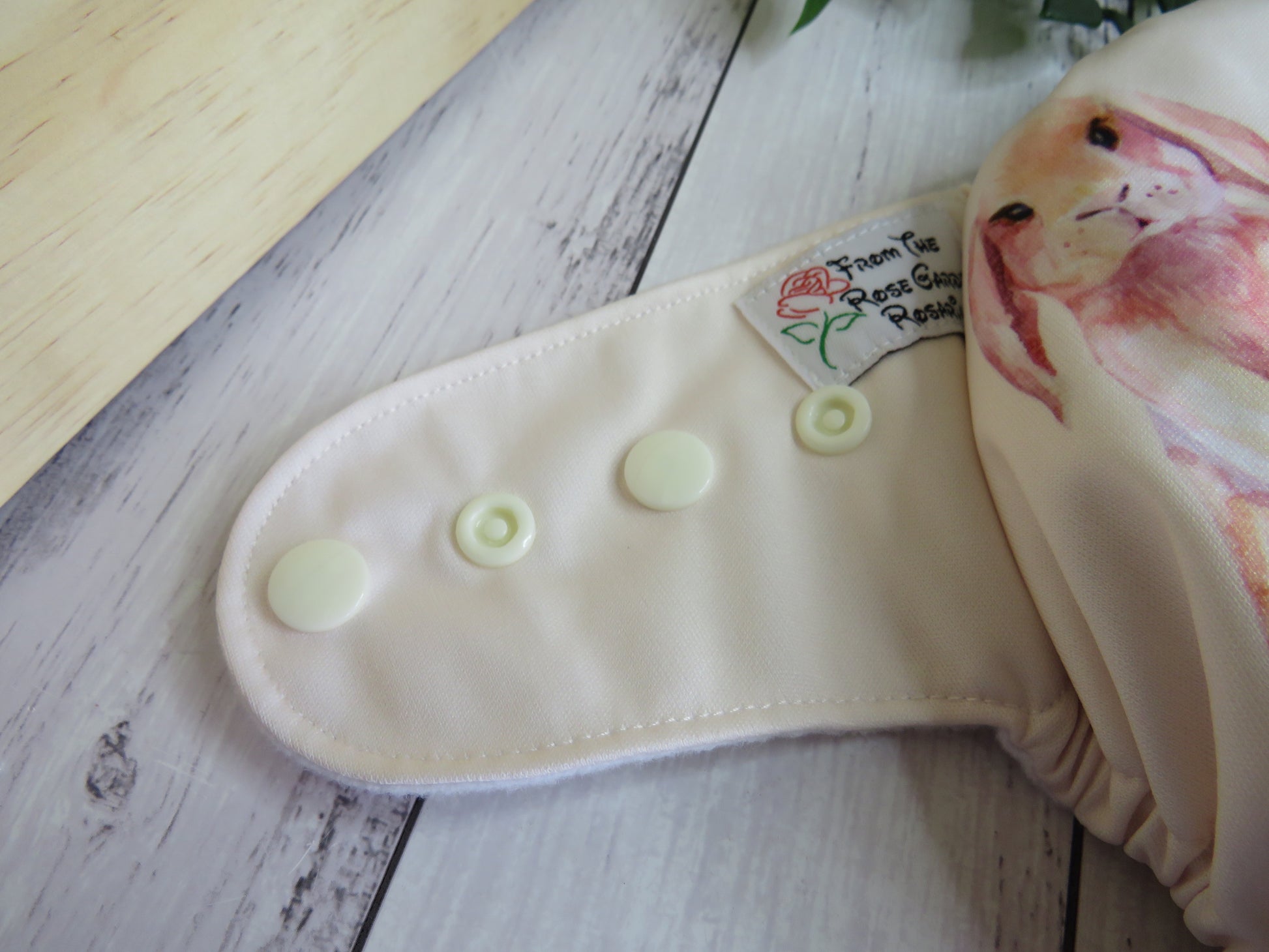 Our Rosarium nappy is a OSFM front snapping nappy that fits from approx 3-17kgs, which on average is from birth right up till toilet training. As with anything the fit may vary depending on your little ones shape.