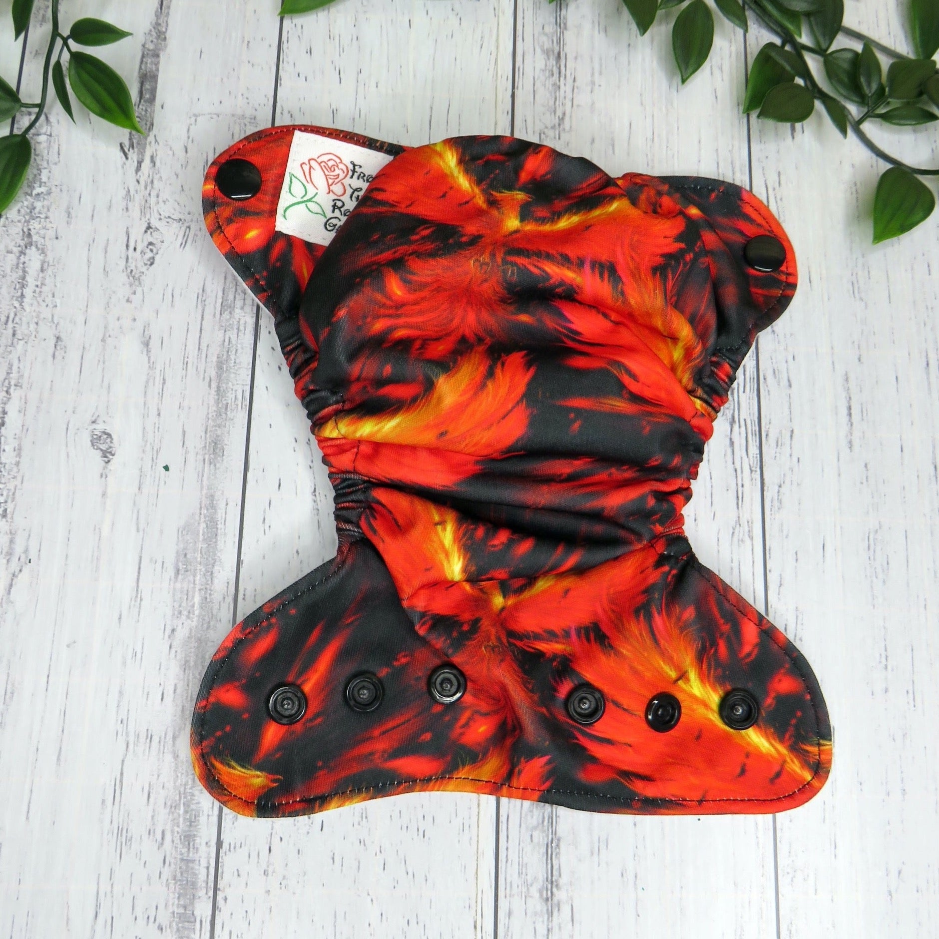 The outer layer of this nappy is PUL with a suede cloth inner, the insert is a fold over snake style insert composed of bamboo and topped with suede cloth to keep bub feeling nice and dry.