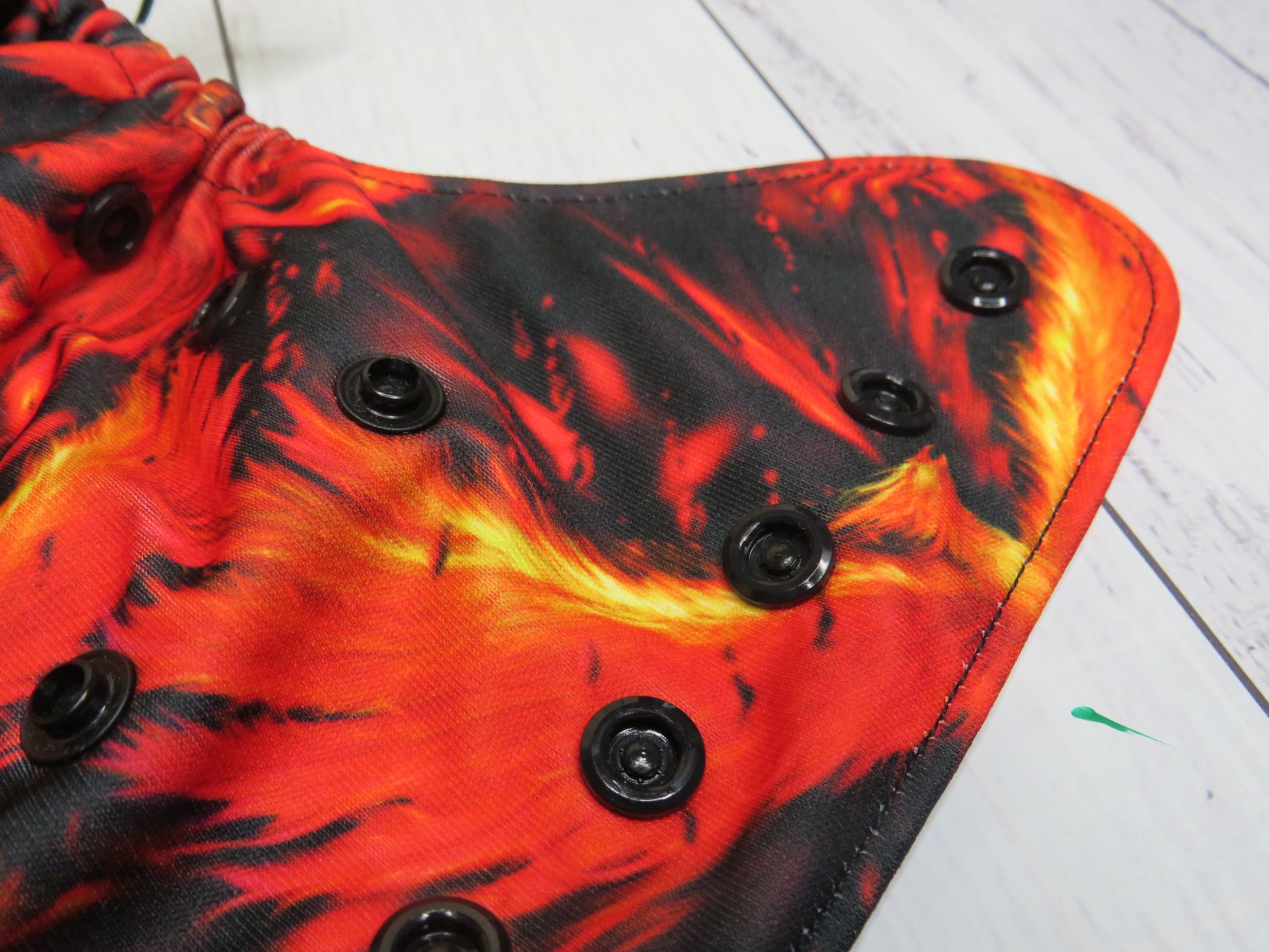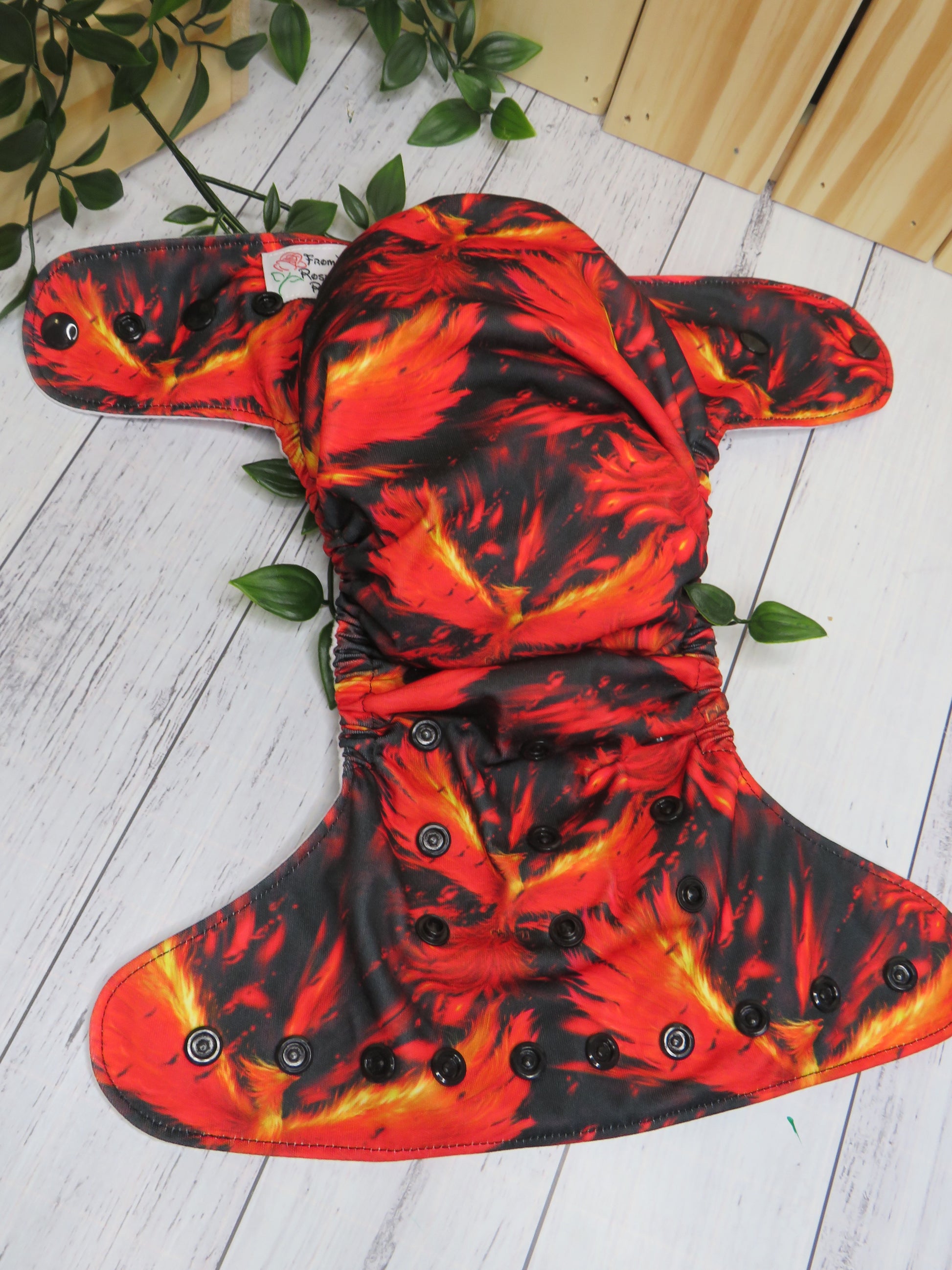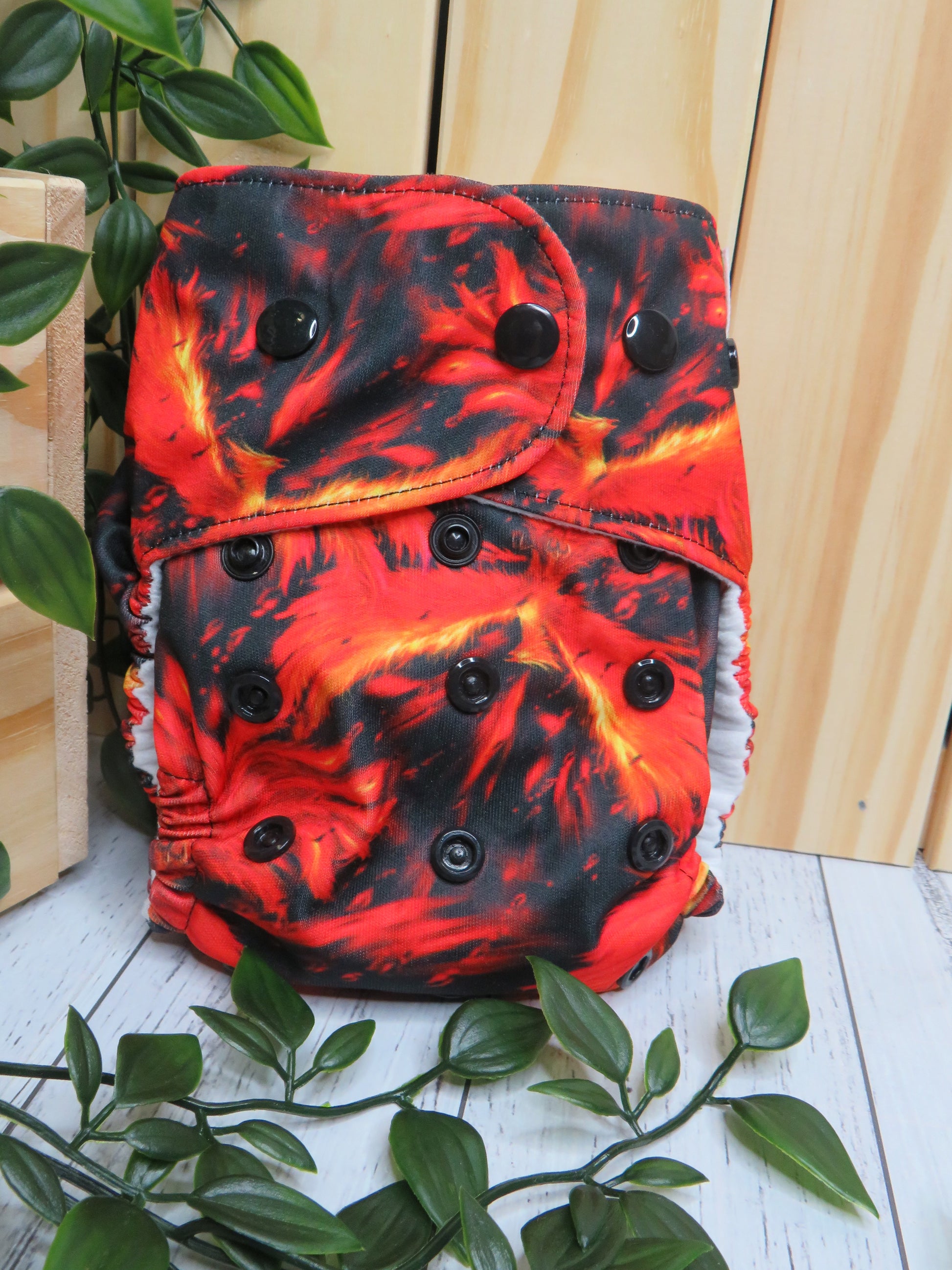 Each nappy comes with a snap in bamboo insert topped with suede cloth and a long bamboo snake insert that can be folded for where the absorbency is needed.