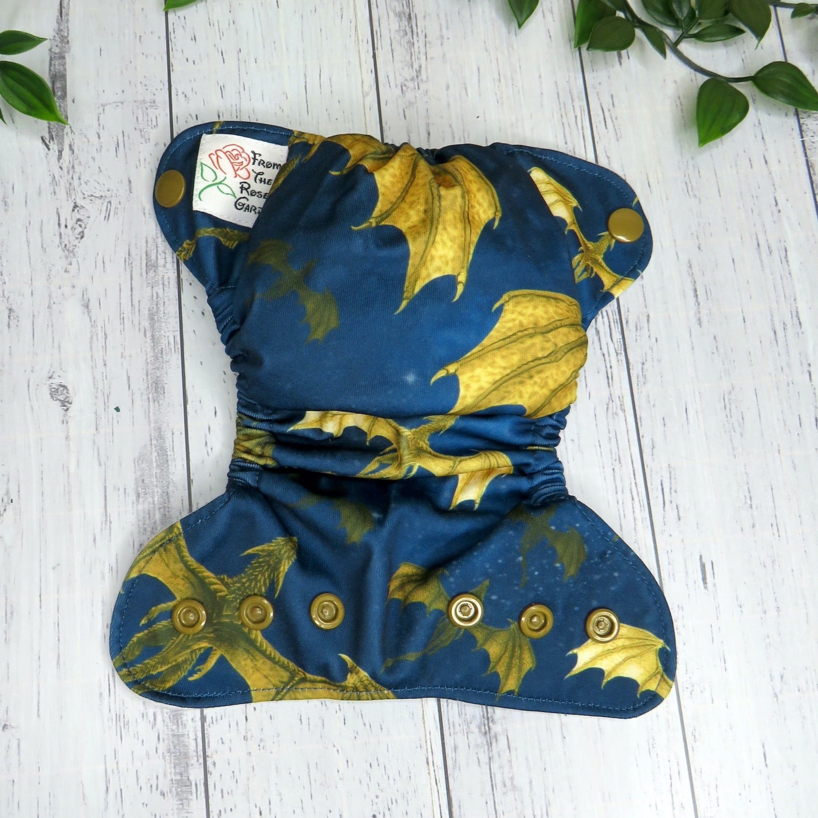 The outer layer of this nappy is PUL with a suede cloth inner, the insert is a fold over snake style insert composed of bamboo and topped with suede cloth to keep bub feeling nice and dry.