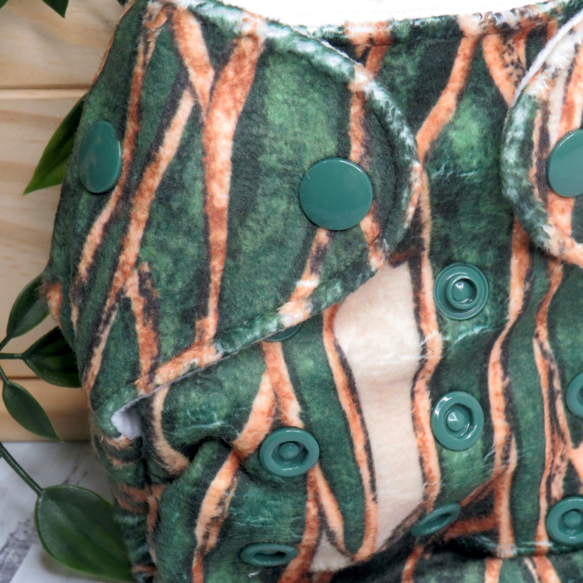 Our front snapping Newborn modern cloth nappy fits from approx 2.5-7kgs, depending on your little ones build.