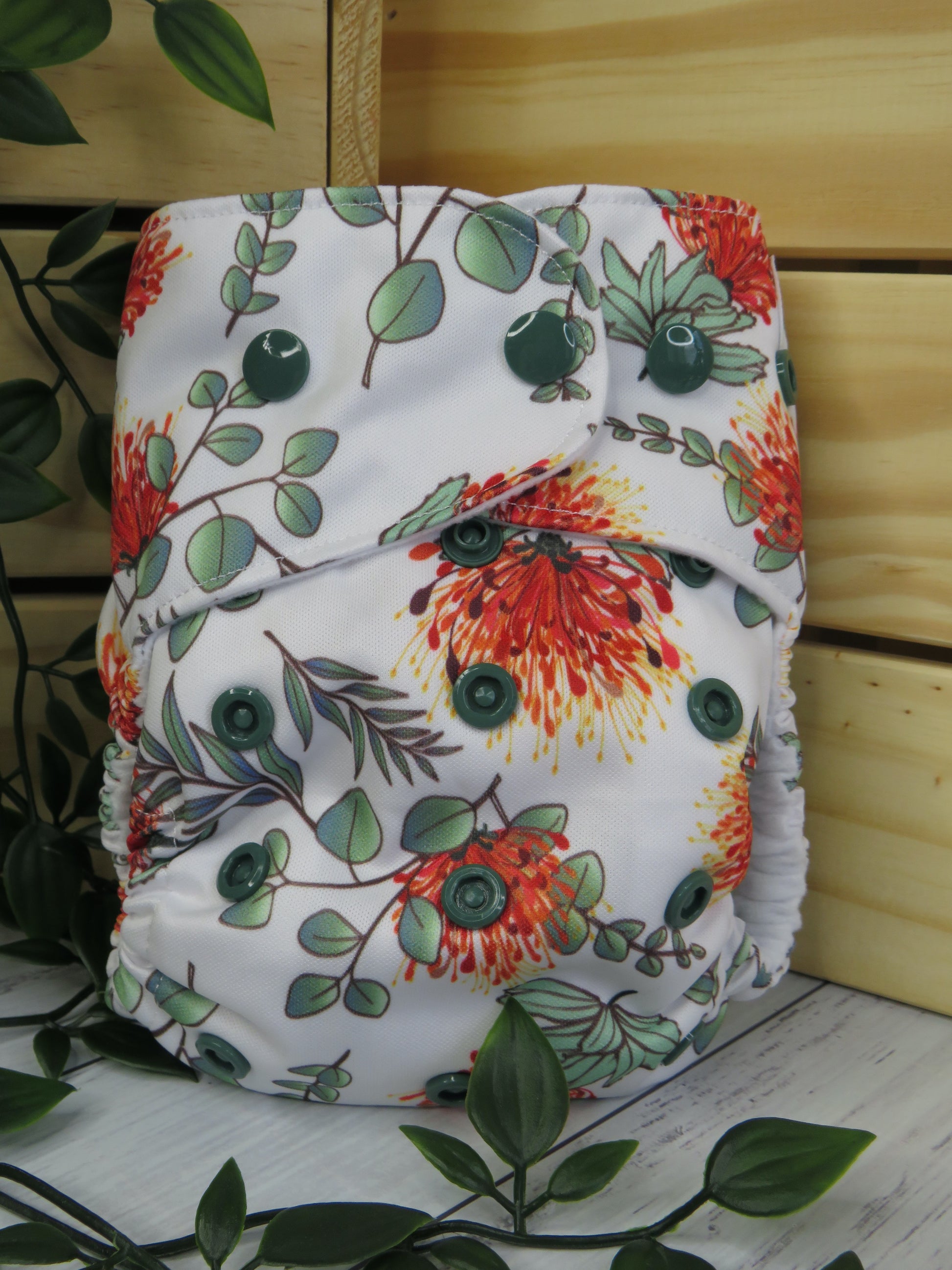 Our Rosarium nappy is a OSFM front snapping nappy that fits from approx 3-17kgs, which on average is from birth right up till toilet training. As with anything the fit may vary depending on your little ones shape.