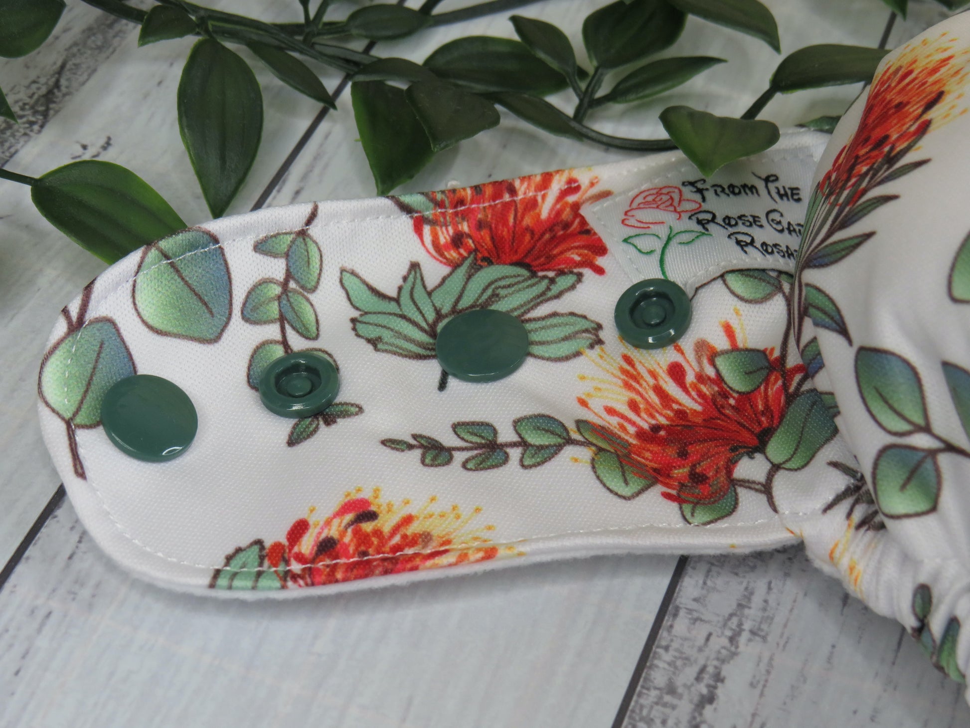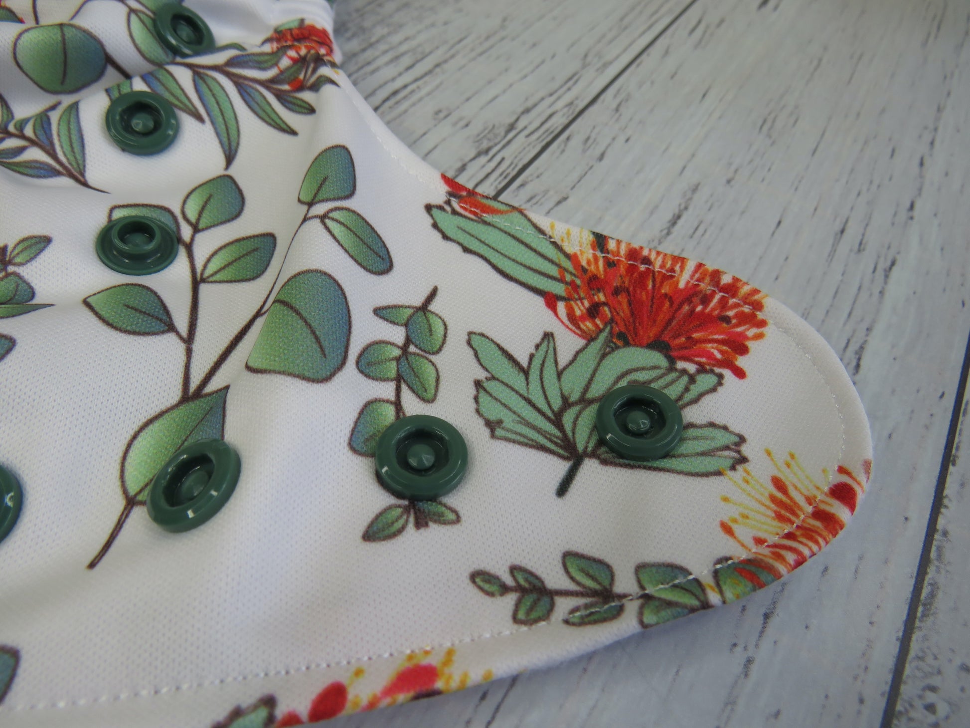 Each nappy comes with a snap in bamboo insert topped with suede cloth and a long bamboo snake insert that can be folded for where the absorbency is needed.