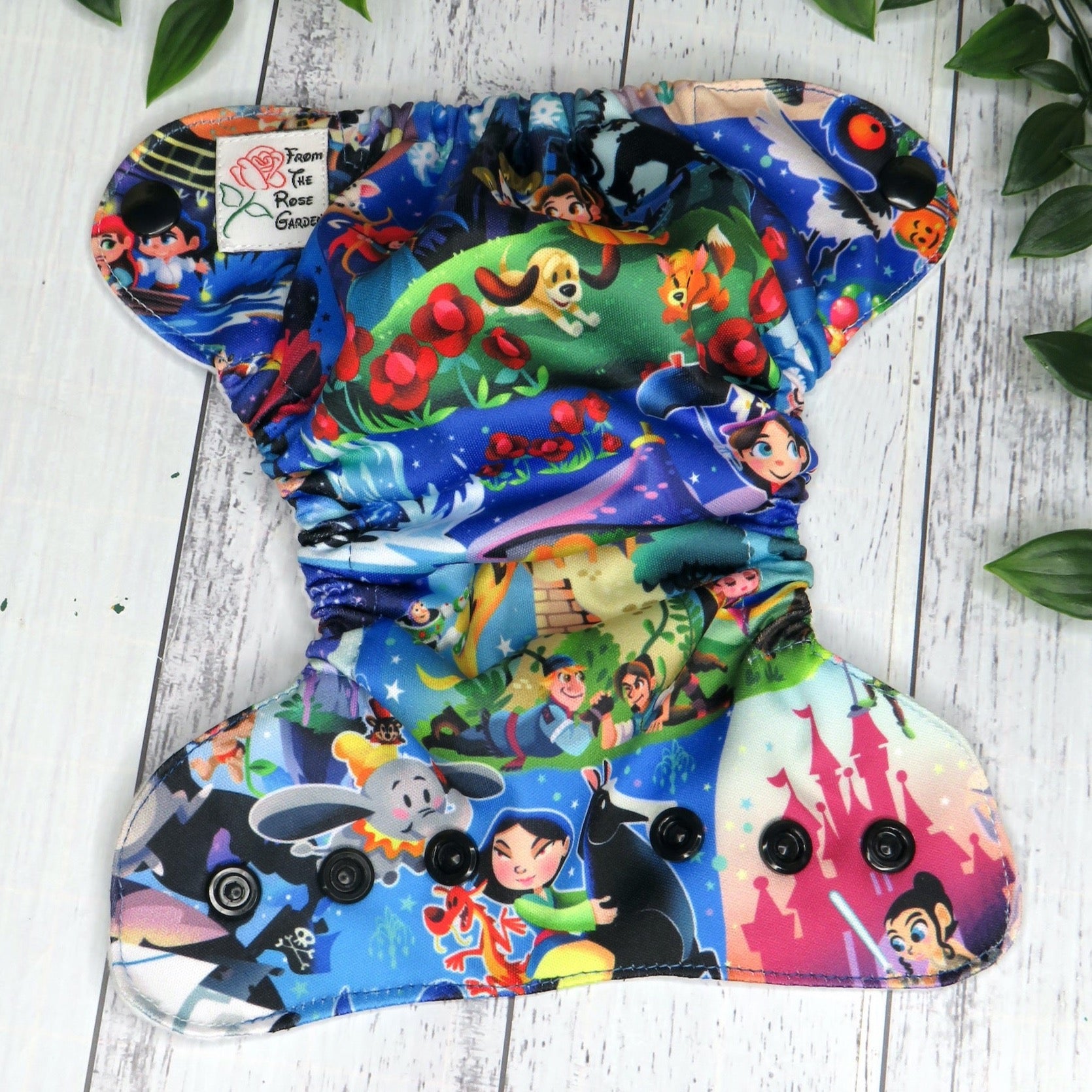 The outer layer of this nappy is PUL with a suede cloth inner, the insert is a fold over snake style insert composed of bamboo and topped with suede cloth to keep bub feeling nice and dry.