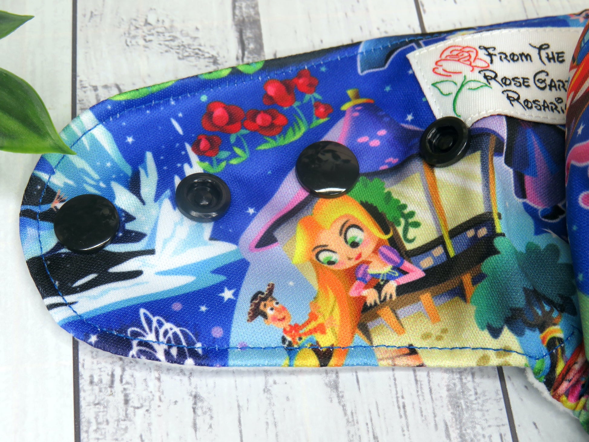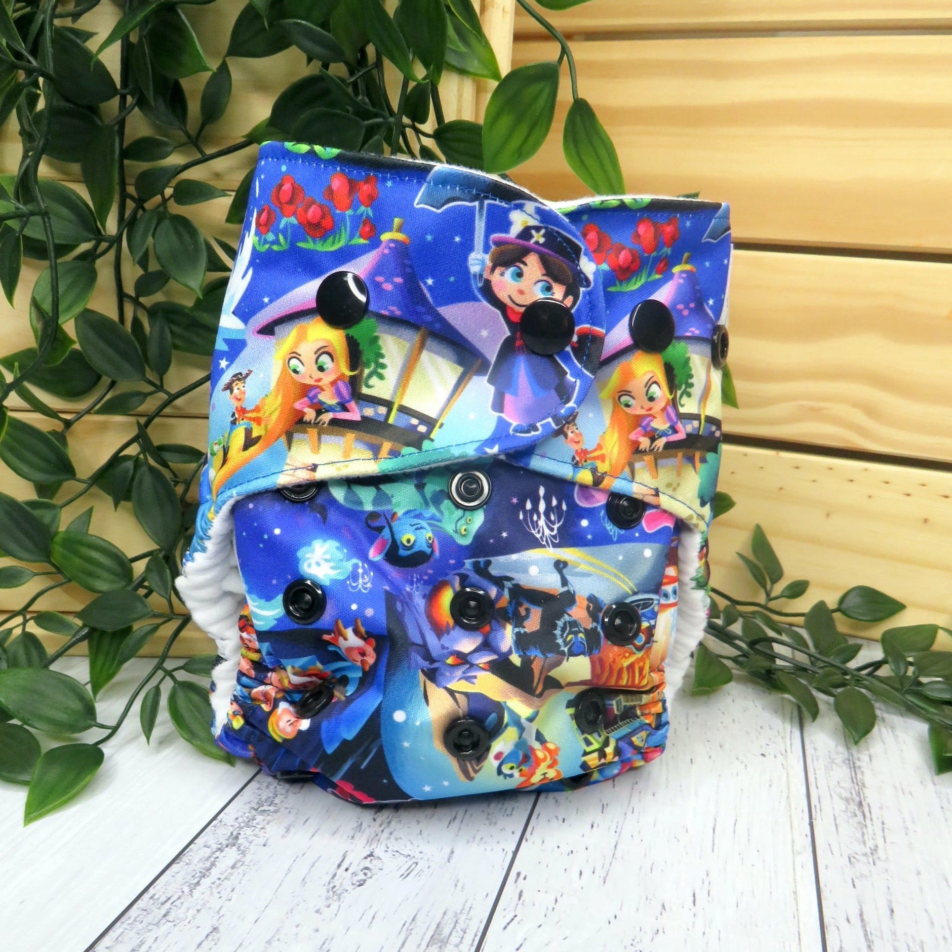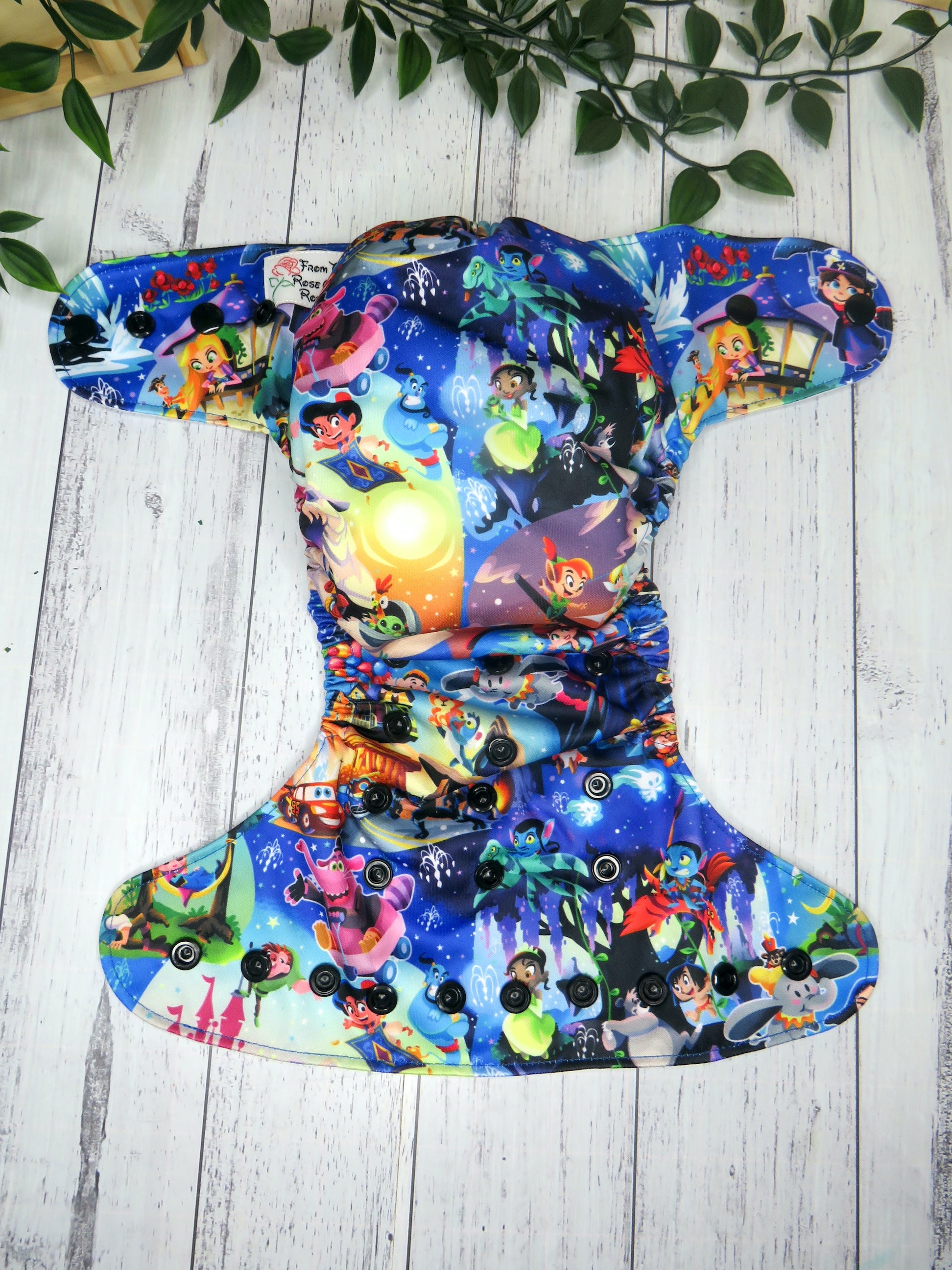 Each nappy comes with a snap in bamboo insert topped with suede cloth and a long bamboo snake insert that can be folded for where the absorbency is needed.