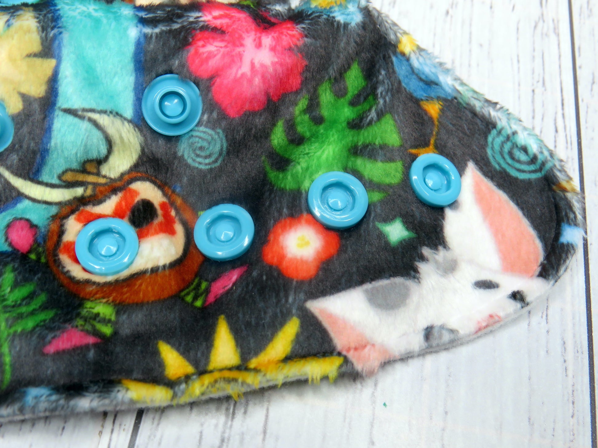 Each nappy is made with a minky outer and suede cloth inner.