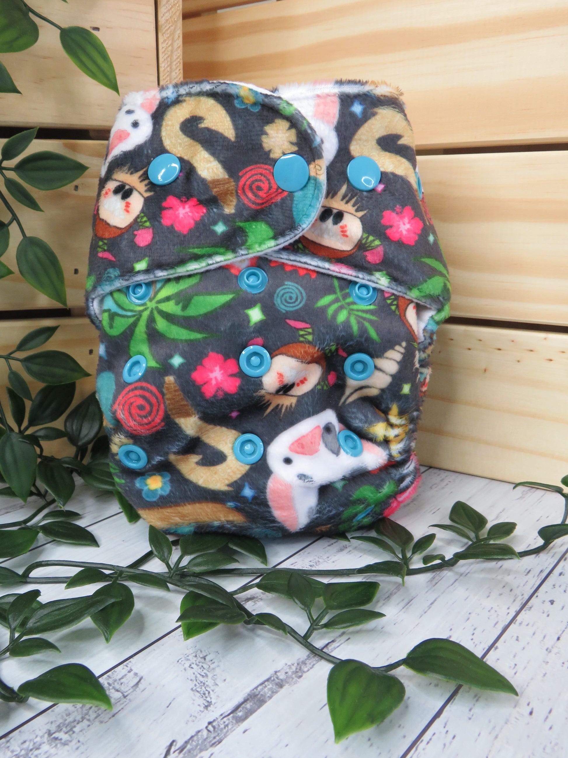 Each nappy is made with a Minky outer and suede cloth inner.