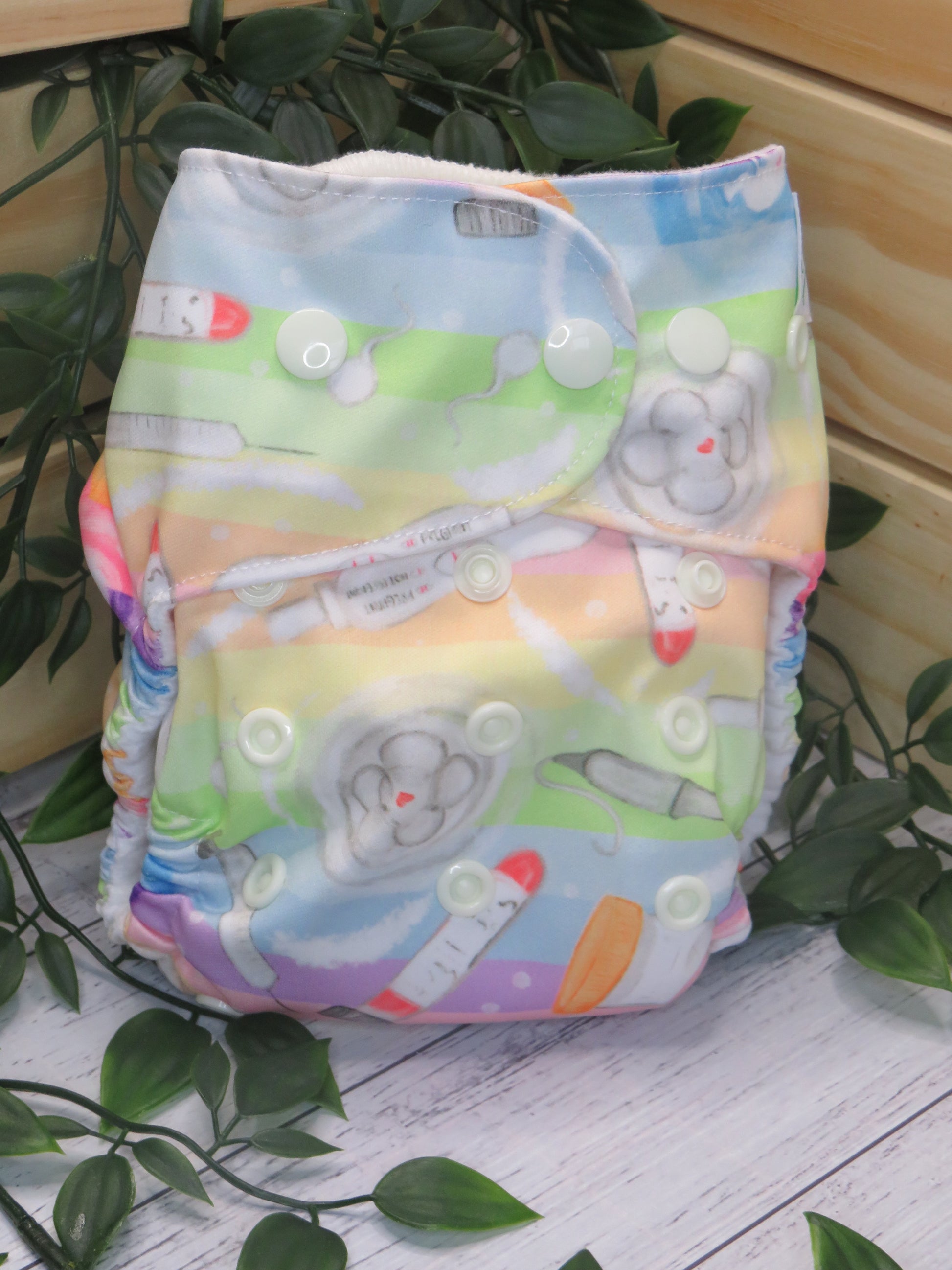Each nappy is made with an PUL outer and suede cloth inner.