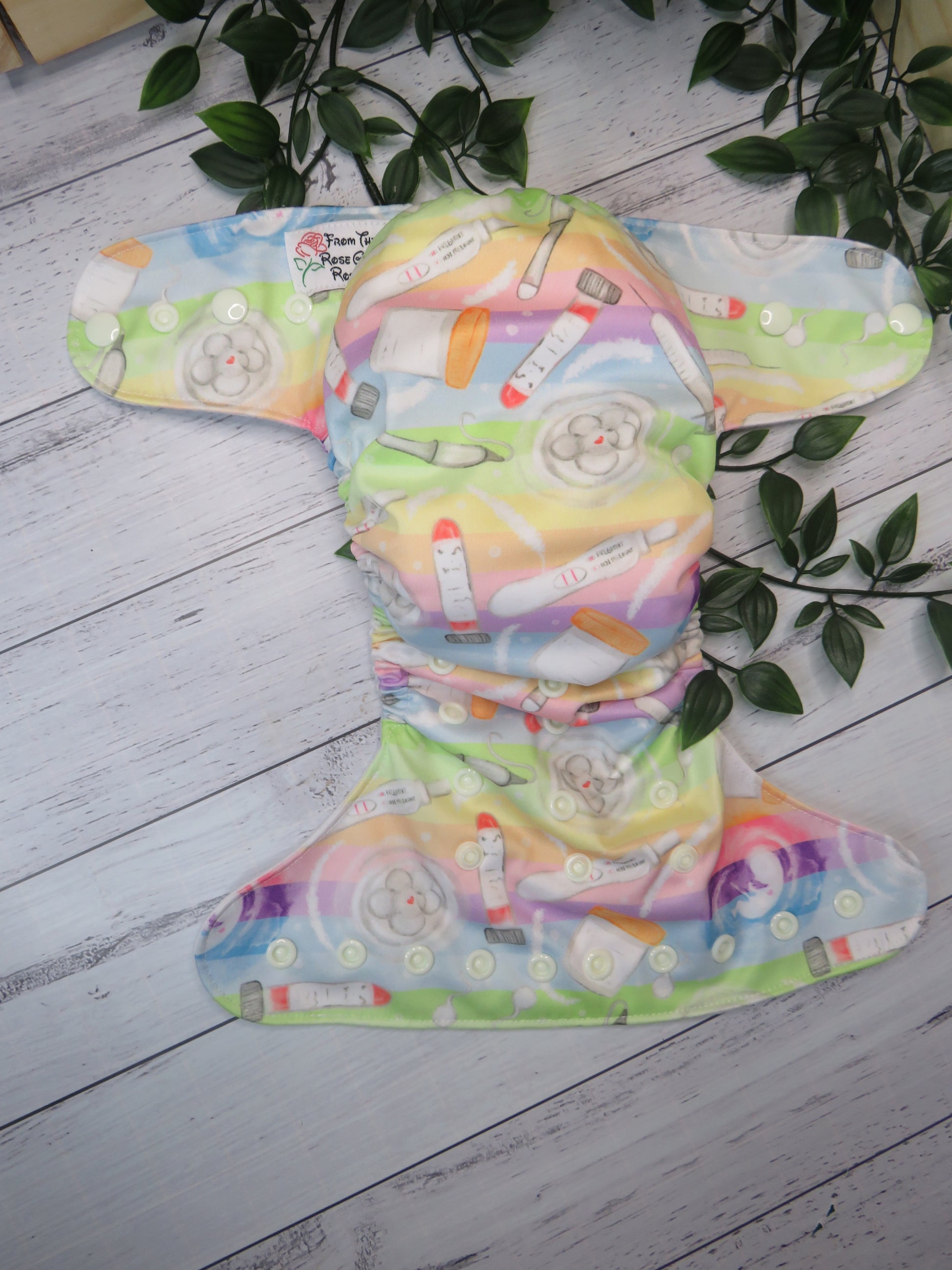 Our Rosarium nappy is a OSFM front snapping nappy that fits from approx 3-17kgs, which on average is from birth right up till toilet training. As with anything the fit may vary depending on your little ones shape.