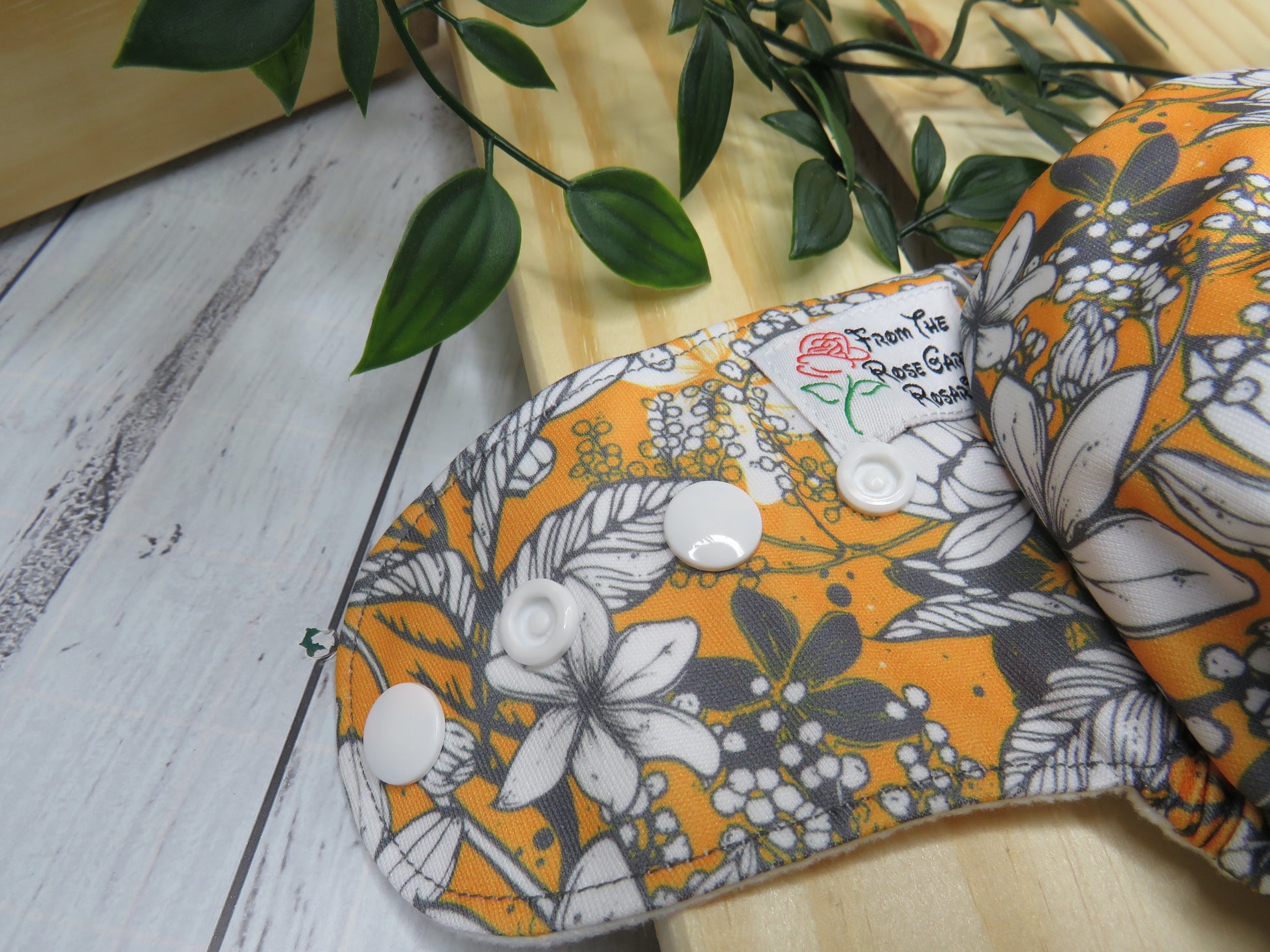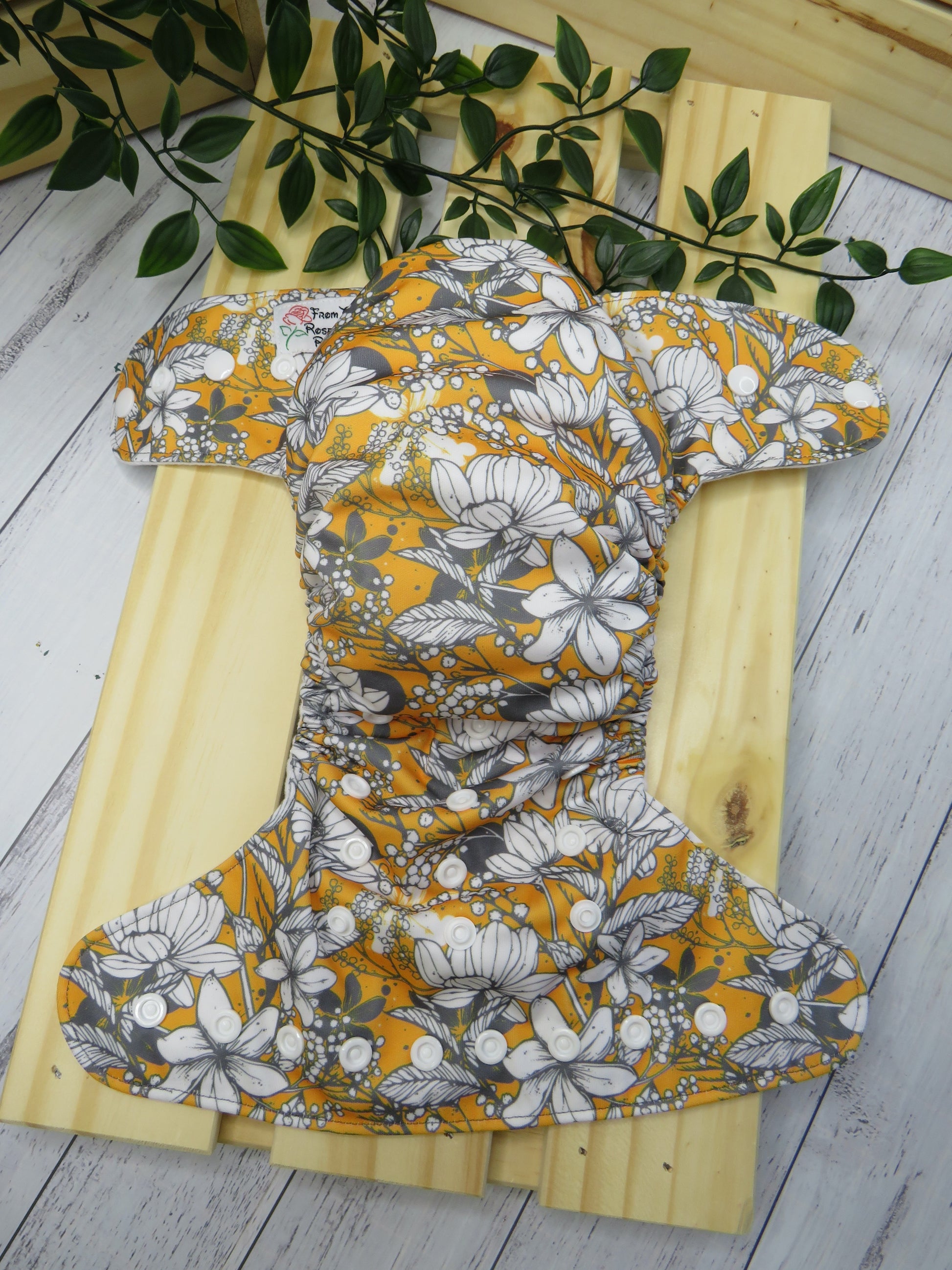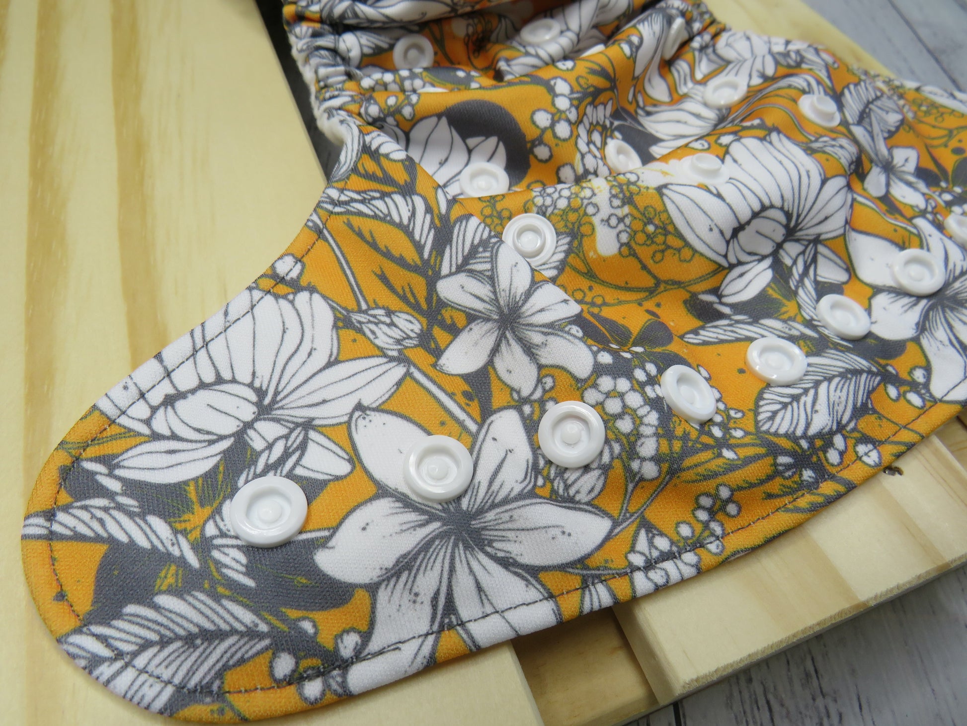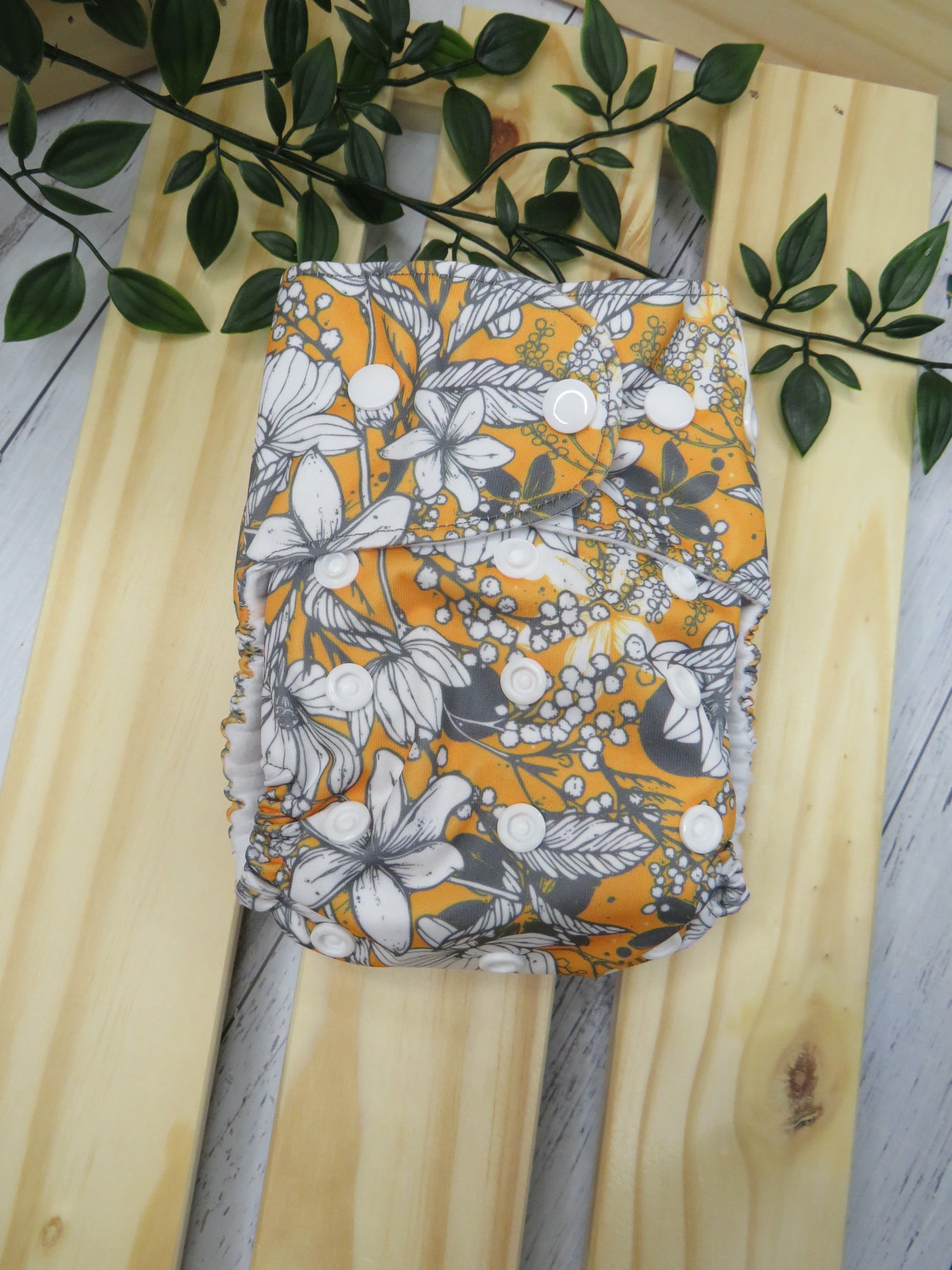 Each nappy comes with a snap in bamboo insert topped with suede cloth and a long bamboo snake insert that can be folded for where the absorbency is needed.
