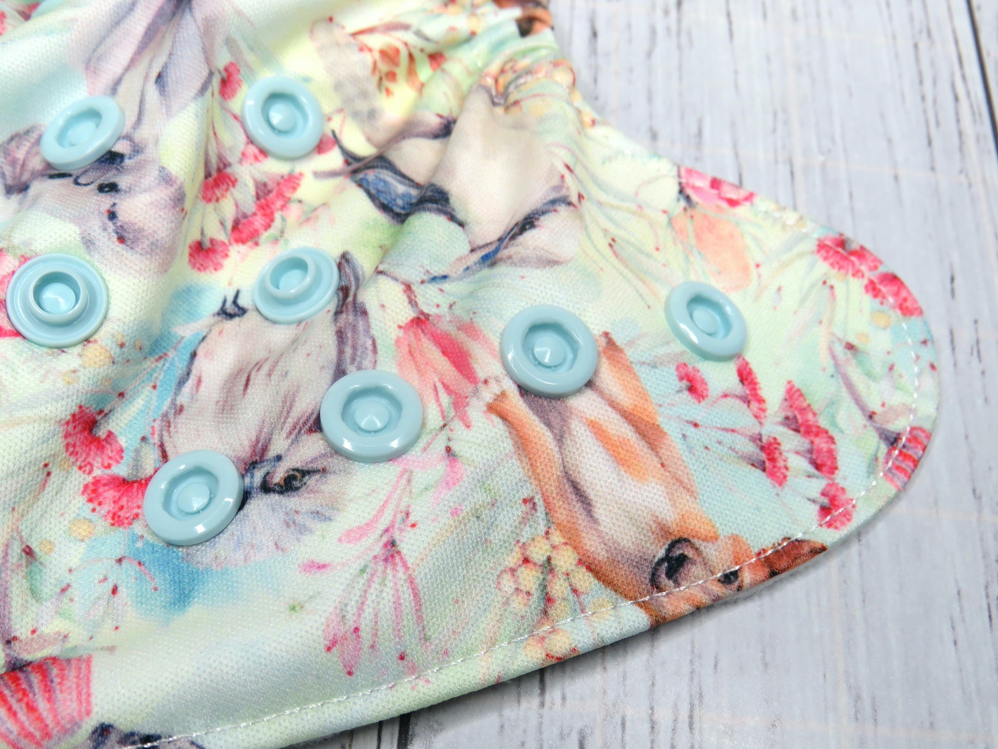 It comes with a snap in bamboo insert topped with suede cloth, a bamboo snake style insert as well as an extra bamboo booster. This will allow you to tailor the nappies absorbency to suit your babies needs