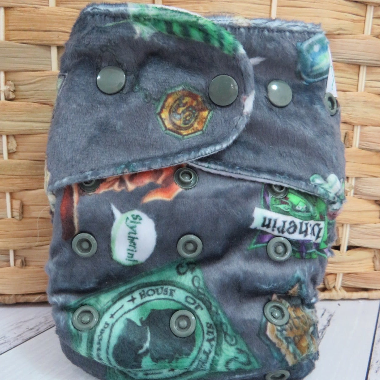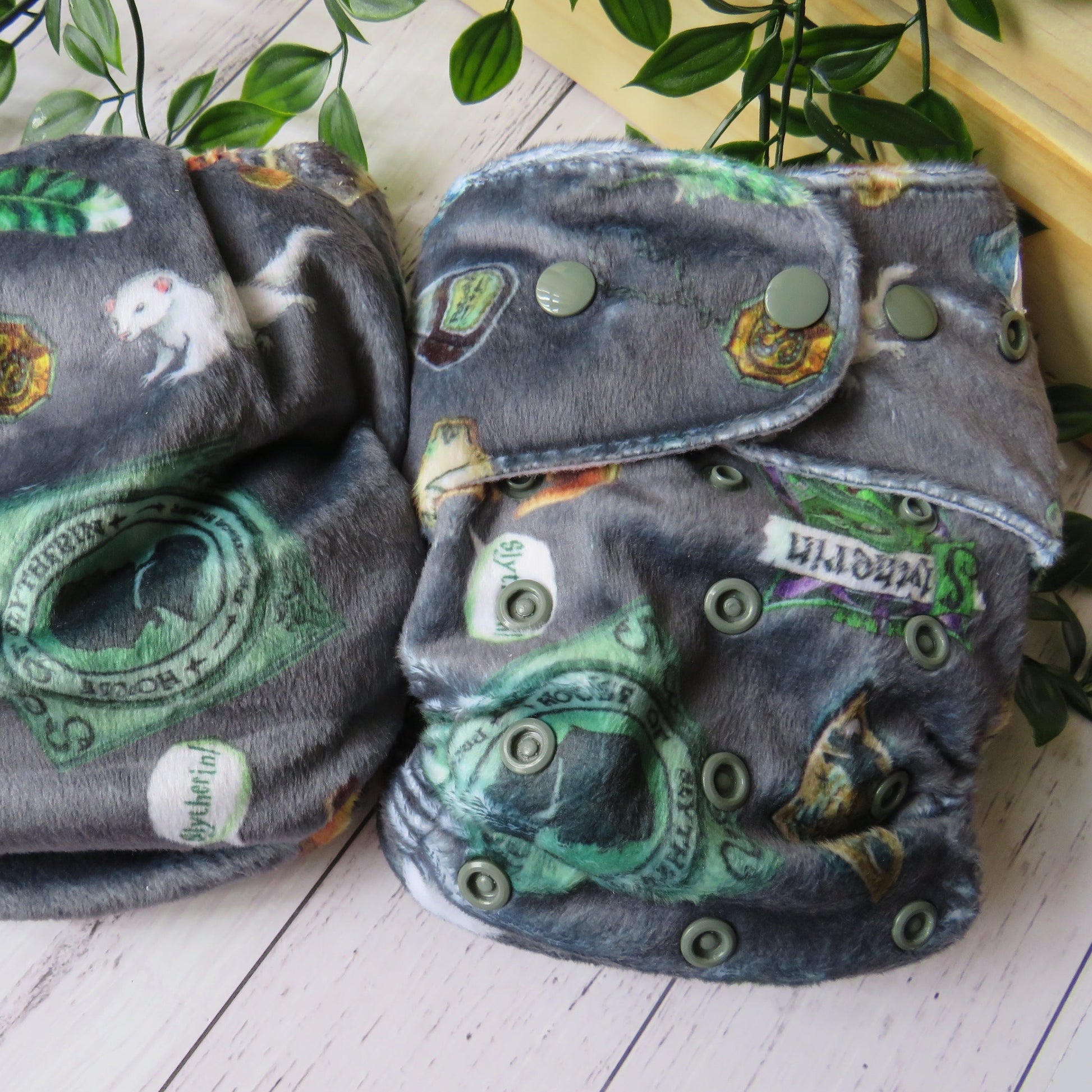 Each nappy comes with a snap in bamboo insert topped with suede cloth and a long bamboo snake insert that can be folded for where the absorbency is needed.
