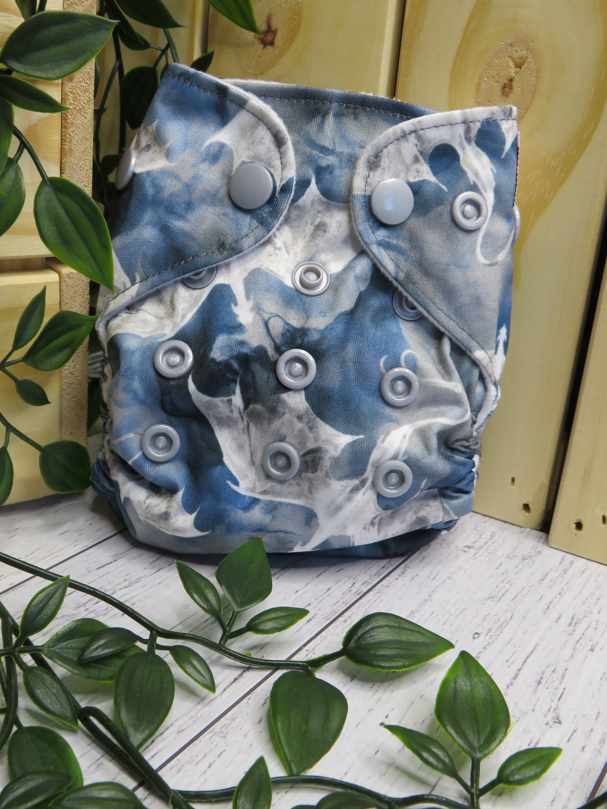Our front snapping Newborn modern cloth nappy fits from approx 2.5-7kgs, depending on your little ones build.
