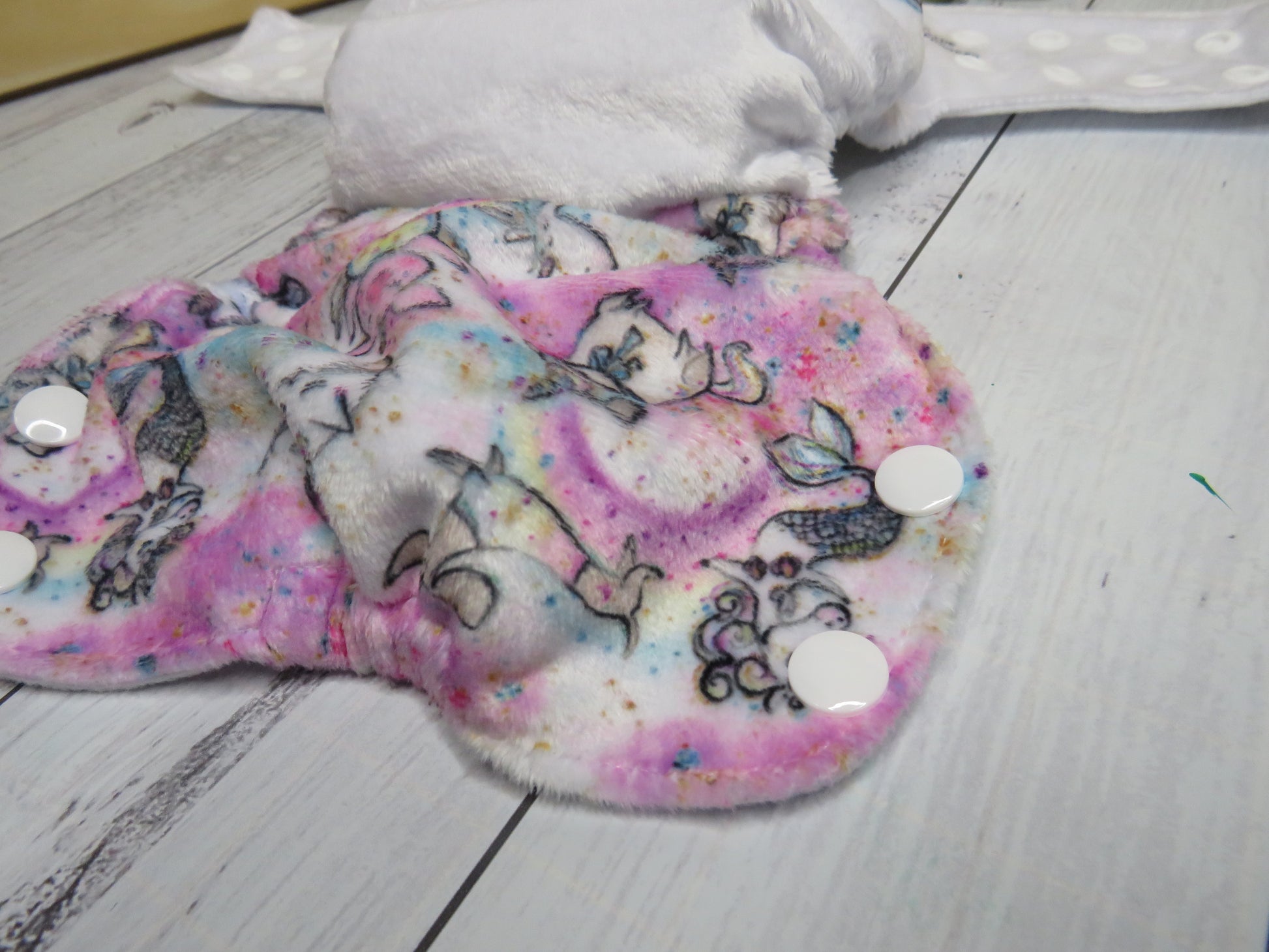 Each nappy comes with a bamboo snap in insert topped with suede cloth and a long bamboo snake insert.