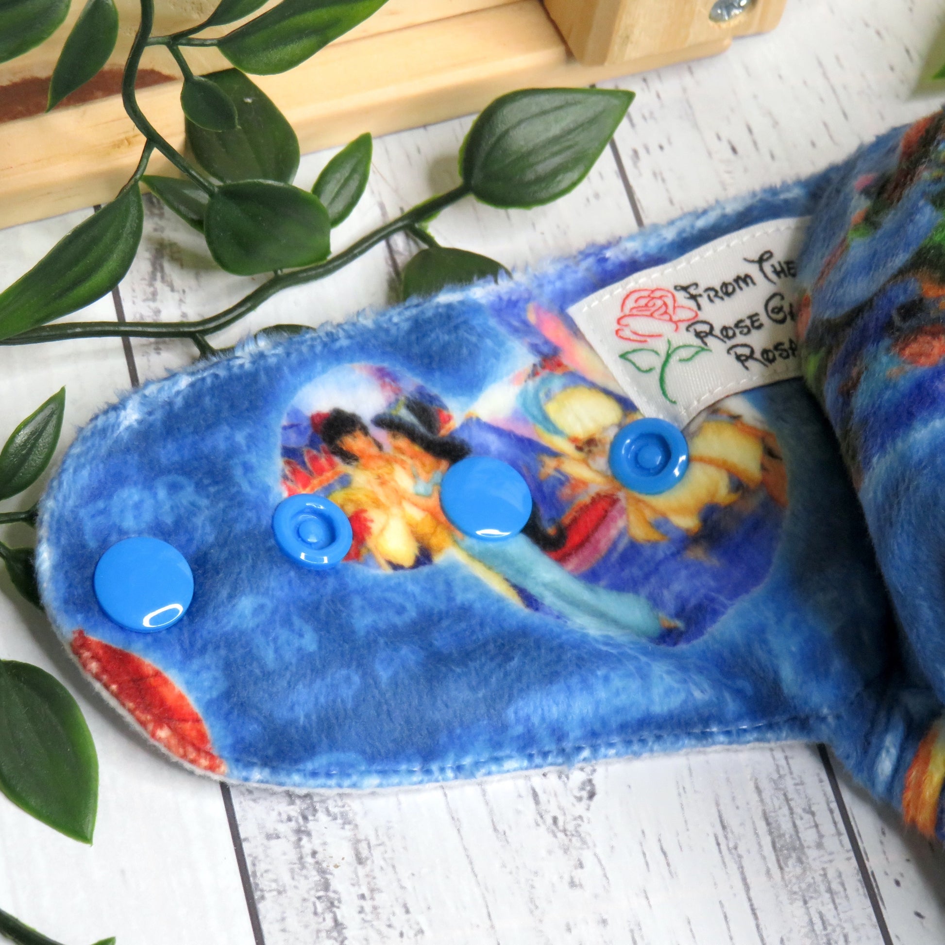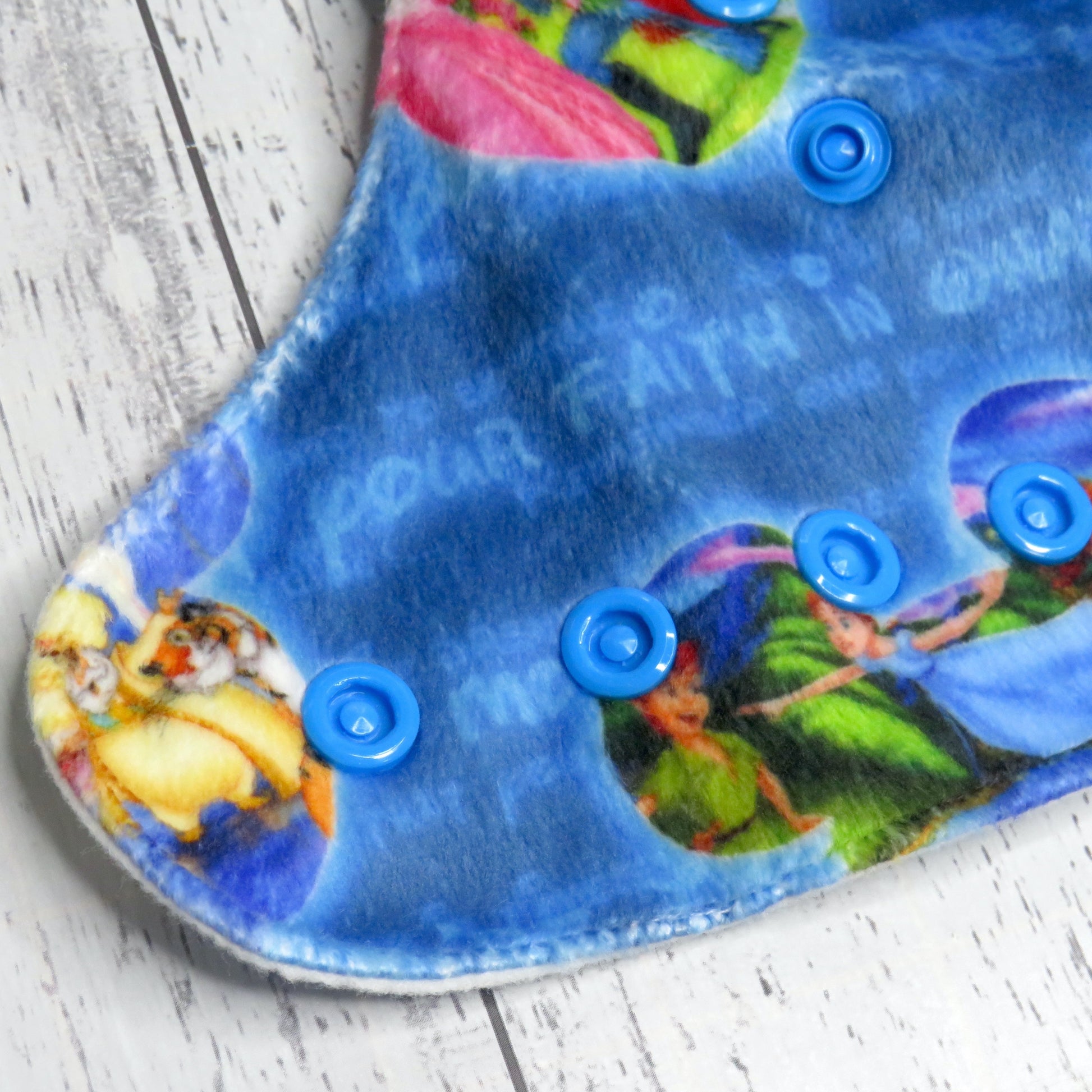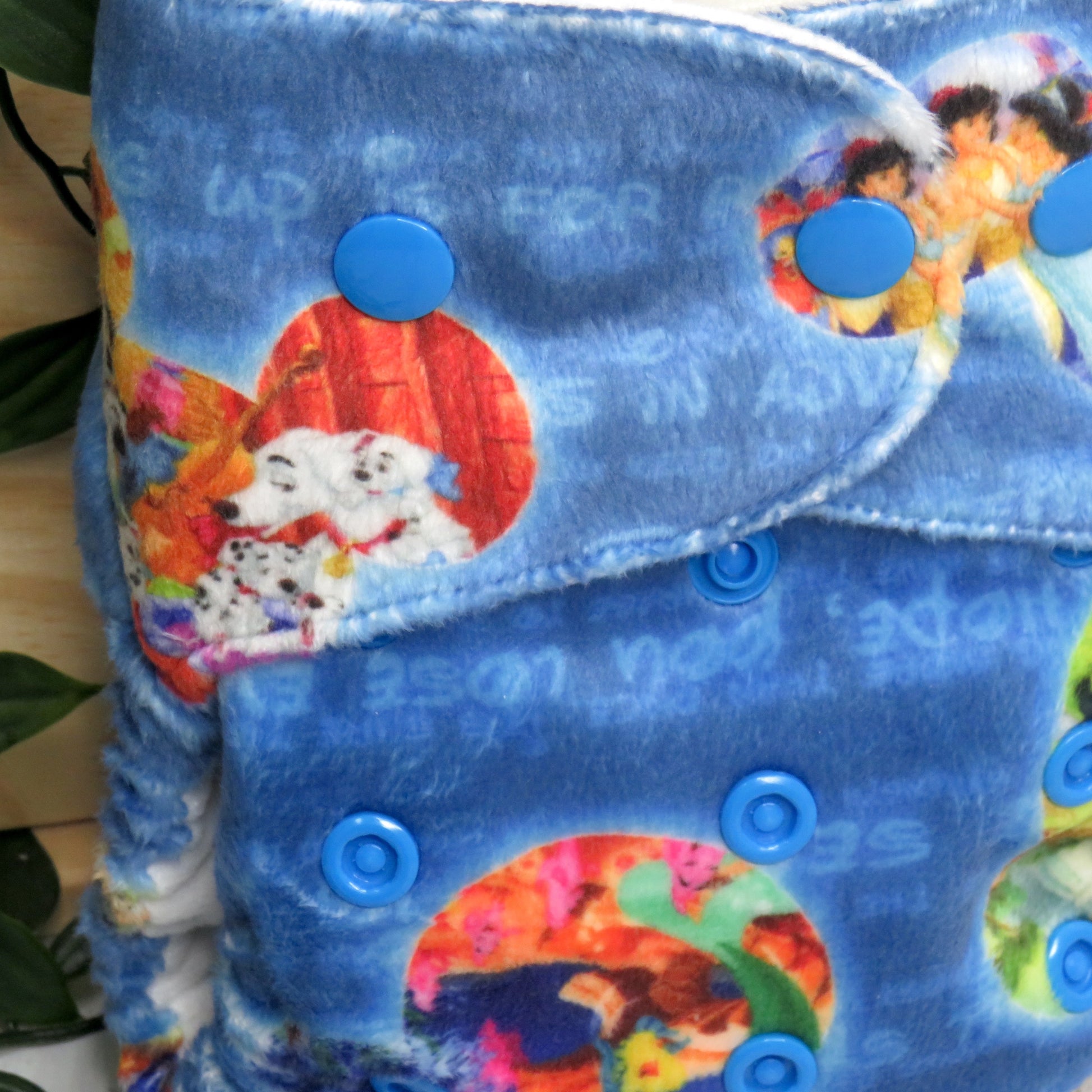 Each nappy comes with a snap in bamboo insert topped with suede cloth and a long bamboo snake insert that can be folded for where the absorbency is needed.