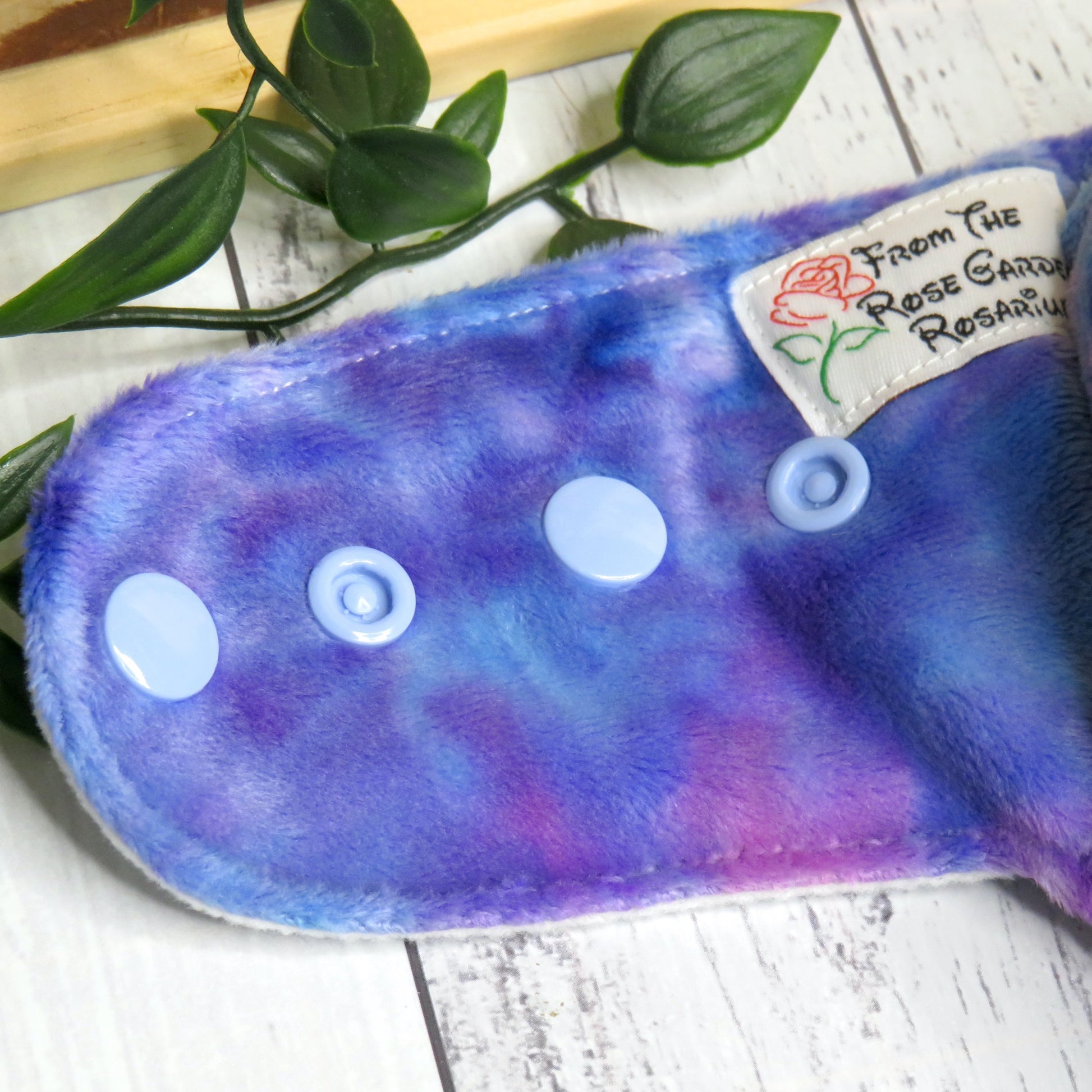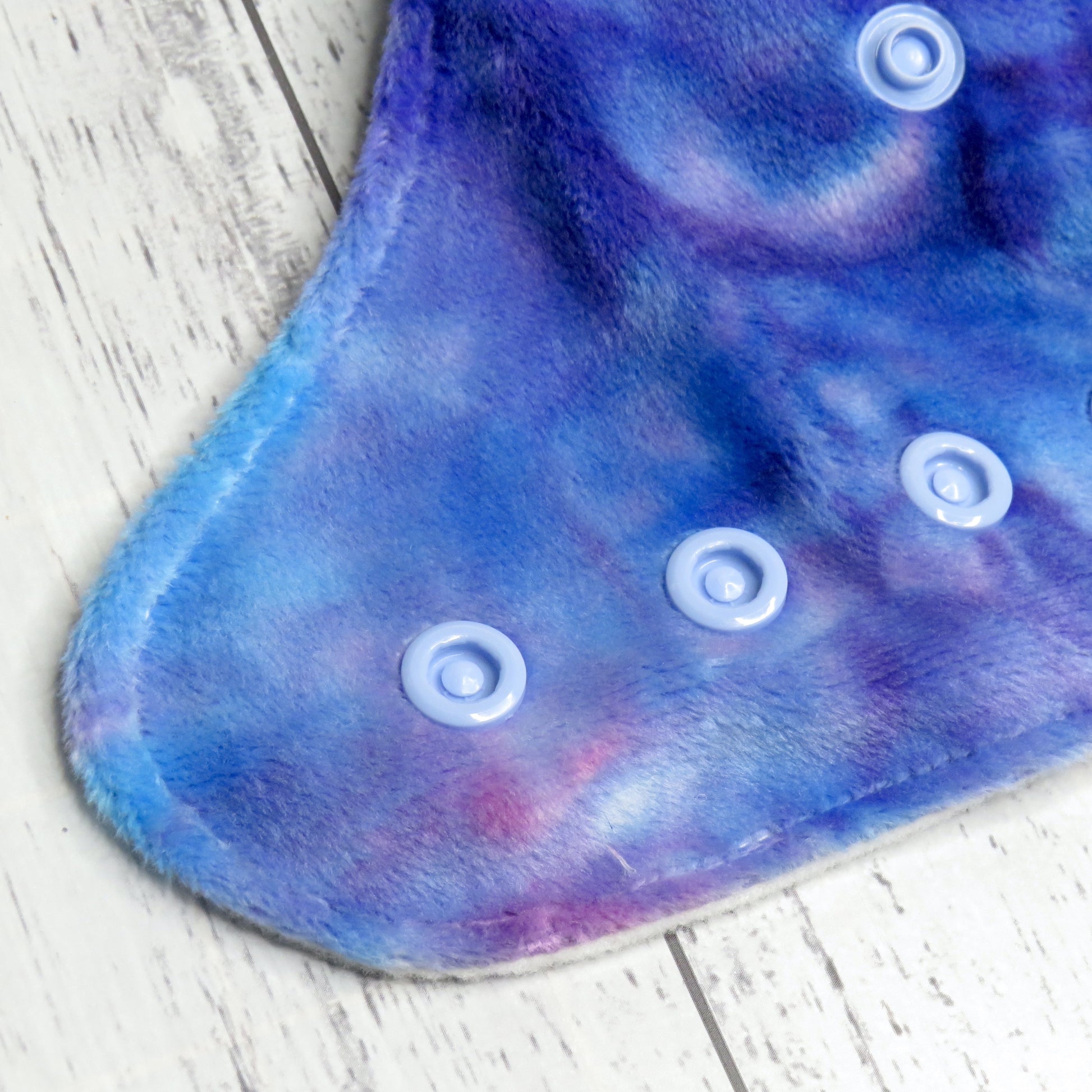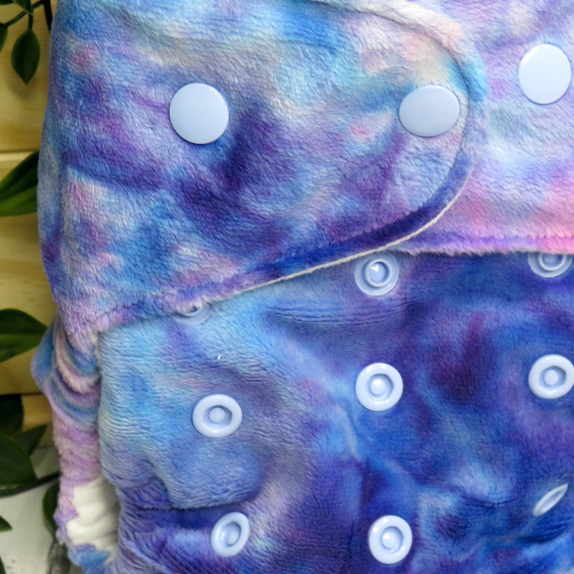 Each nappy comes with a snap in bamboo insert topped with suede cloth and a long bamboo snake insert that can be folded for where the absorbency is needed.