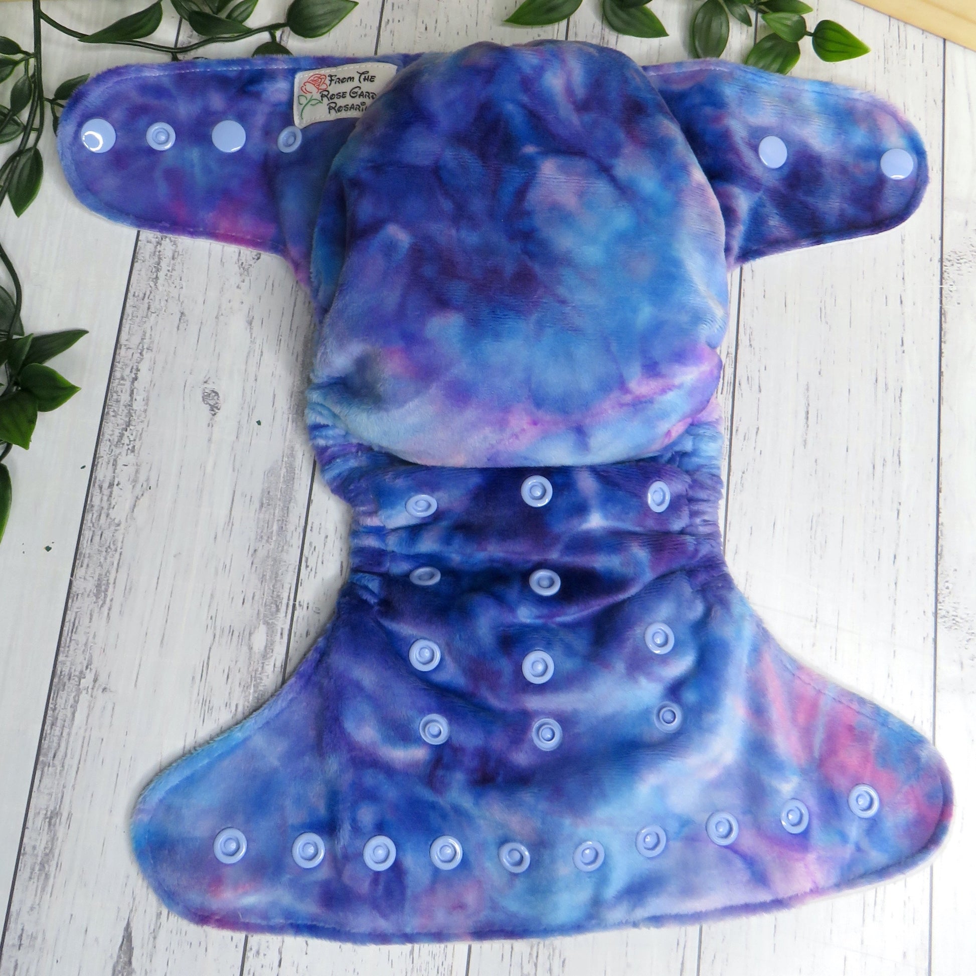 Our Rosarium nappy is a OSFM front snapping nappy that fits from approx 3-17kgs, which on average is from birth right up till toilet training. As with anything the fit may vary depending on your little ones shape.