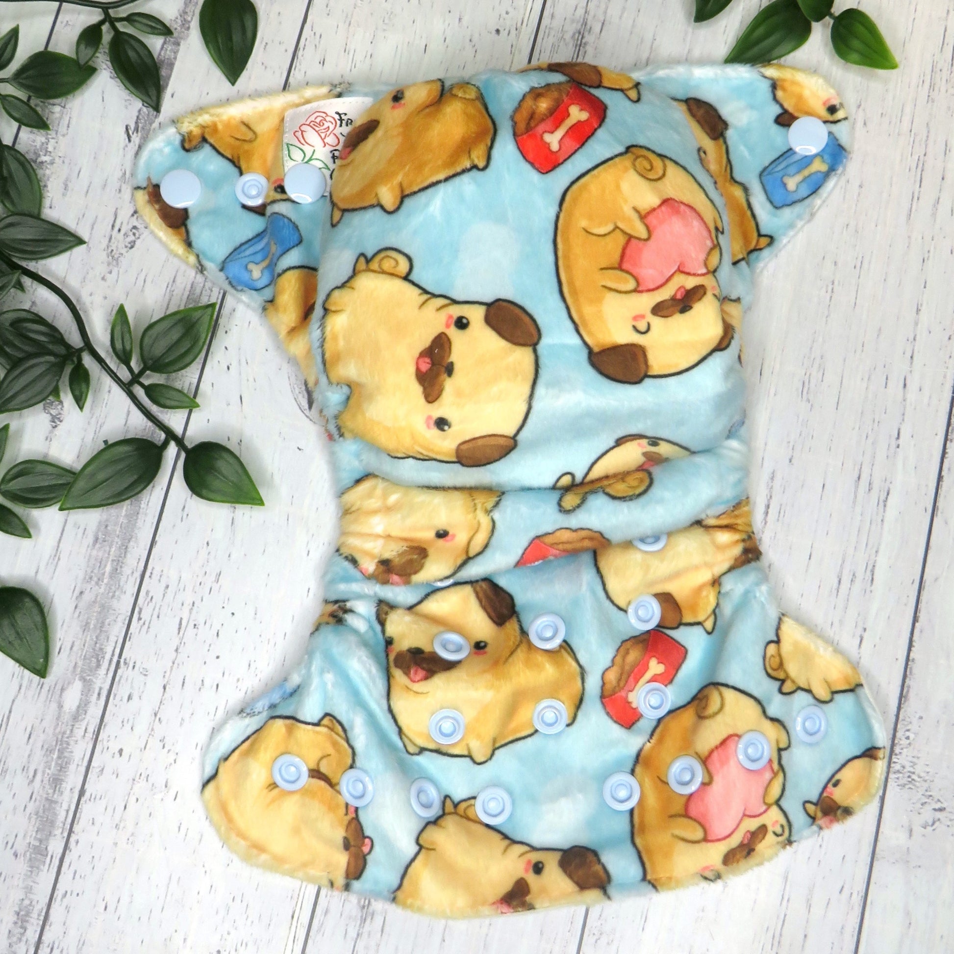 Our front snapping Newborn modern cloth nappy fits from approx 2.5-7kgs, depending on your little ones build.