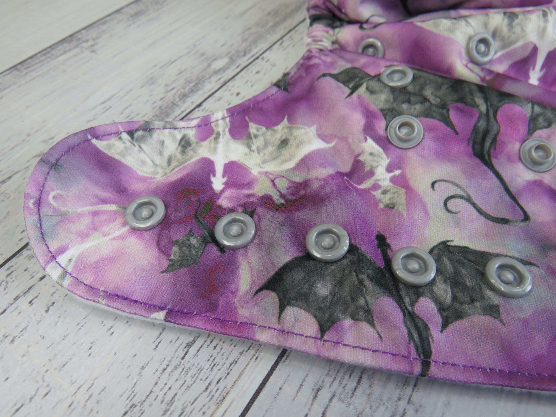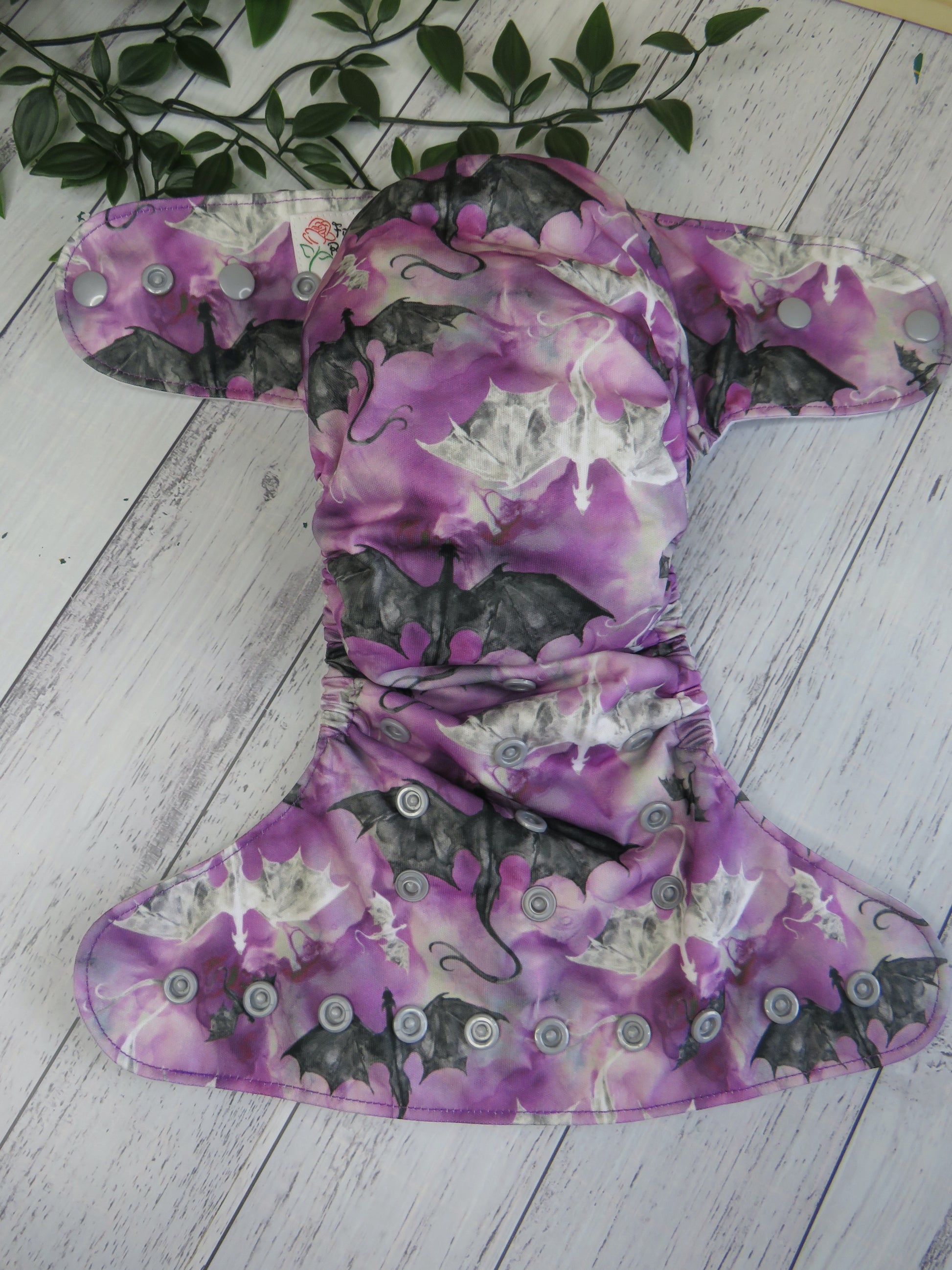 Each nappy comes with a snap in bamboo insert topped with suede cloth and a long bamboo snake insert that can be folded for where the absorbency is needed.