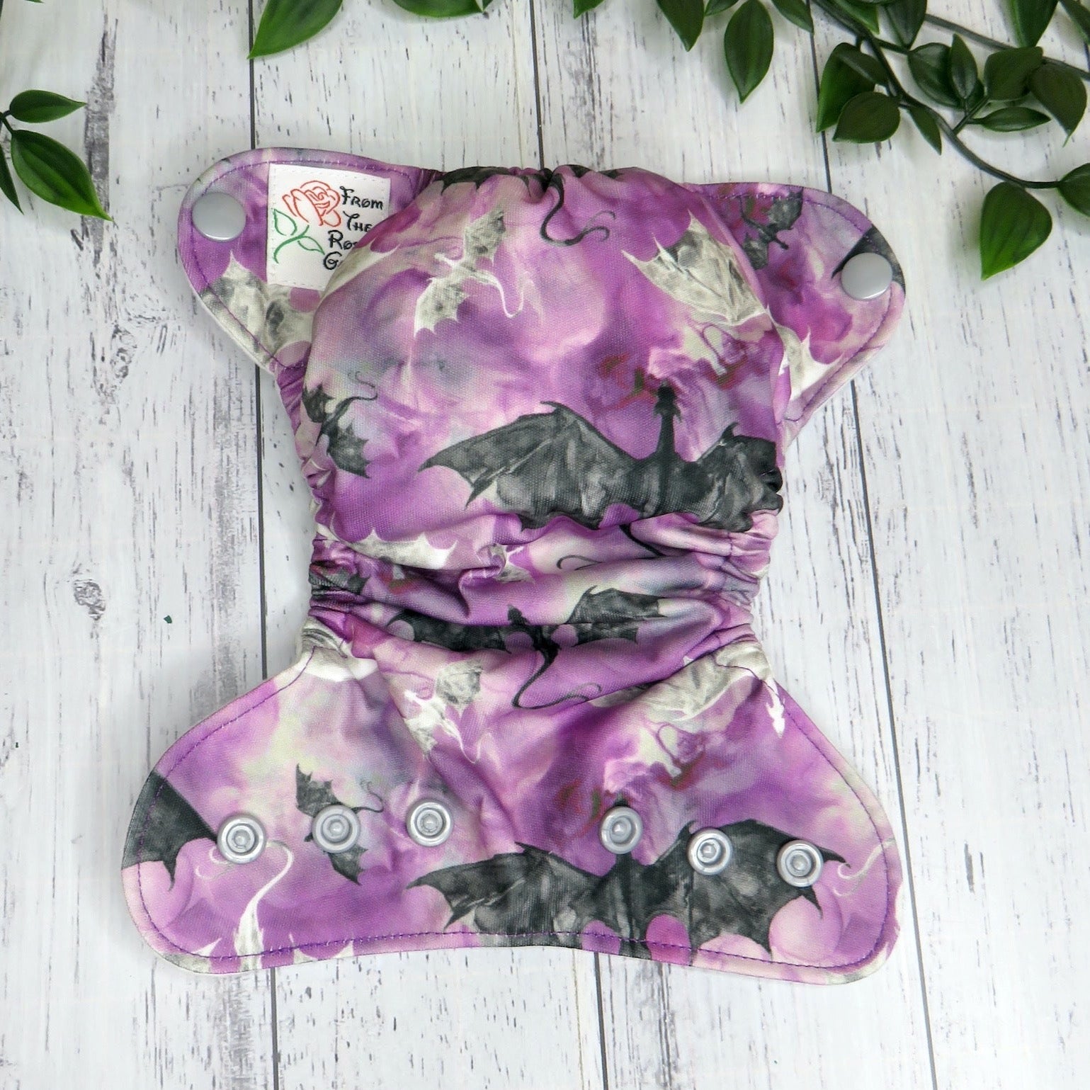 The outer layer of this nappy is PUL with a suede cloth inner, the insert is a fold over snake style insert composed of bamboo and topped with suede cloth to keep bub feeling nice and dry.