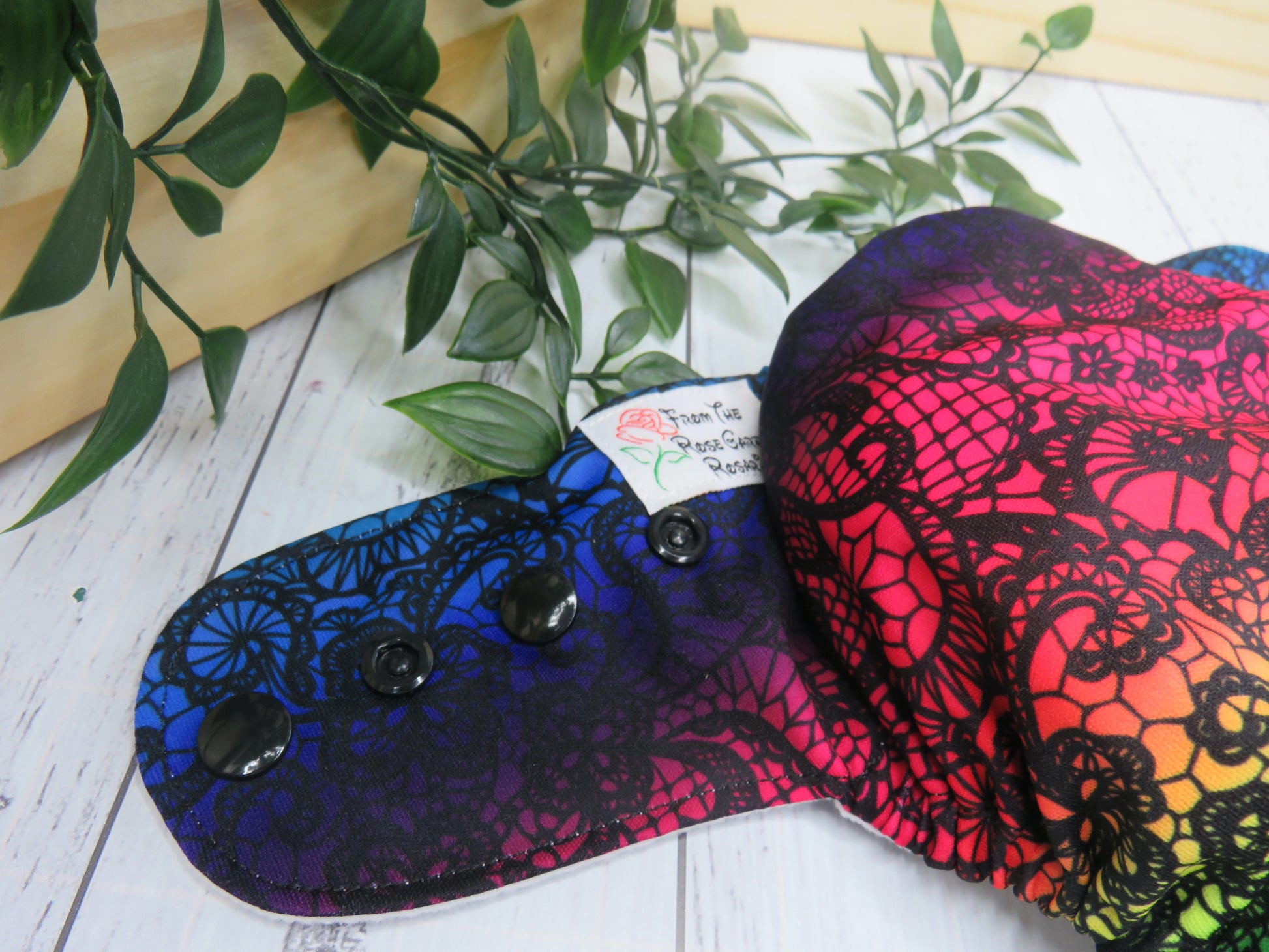 Each nappy comes with a snap in bamboo insert topped with suede cloth and a long bamboo snake insert that can be folded for where the absorbency is needed.